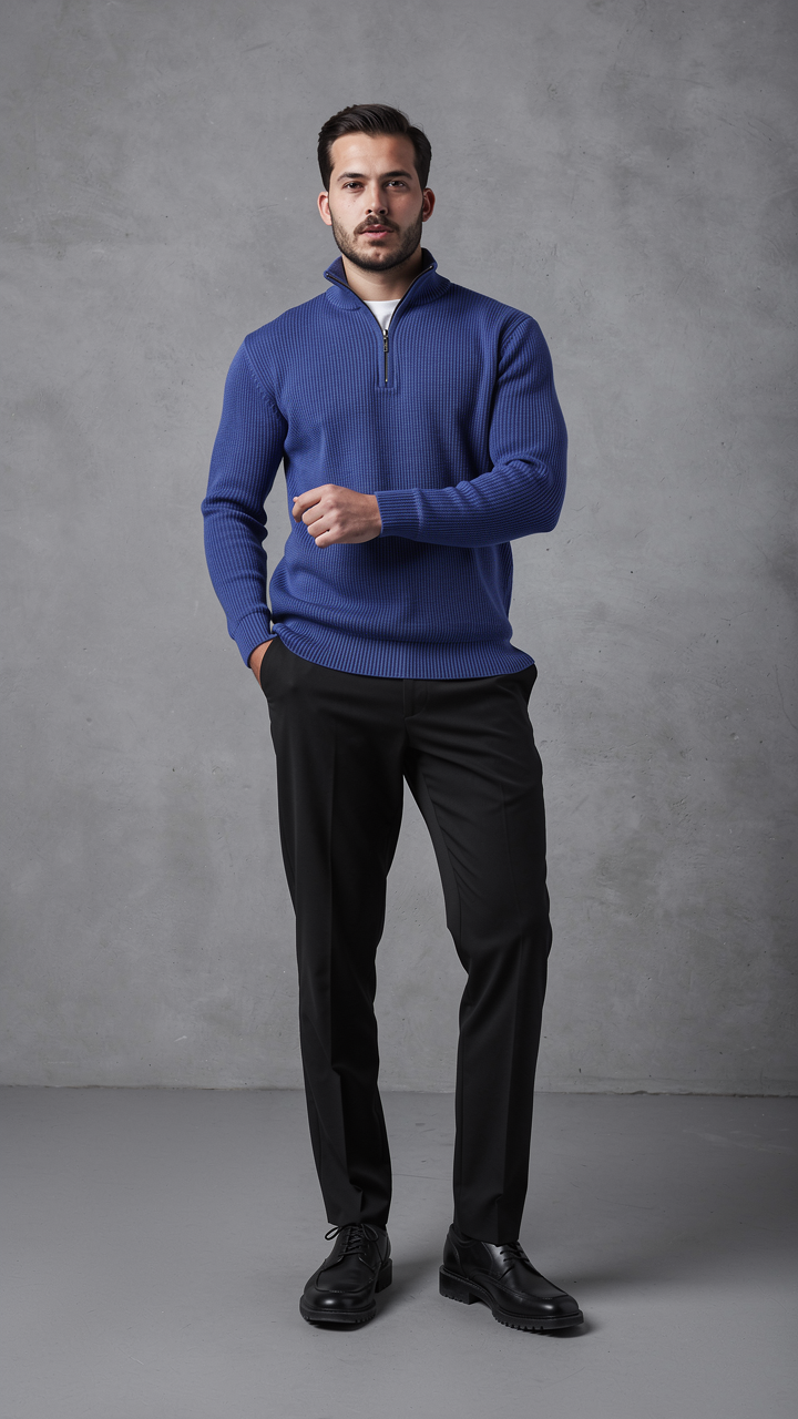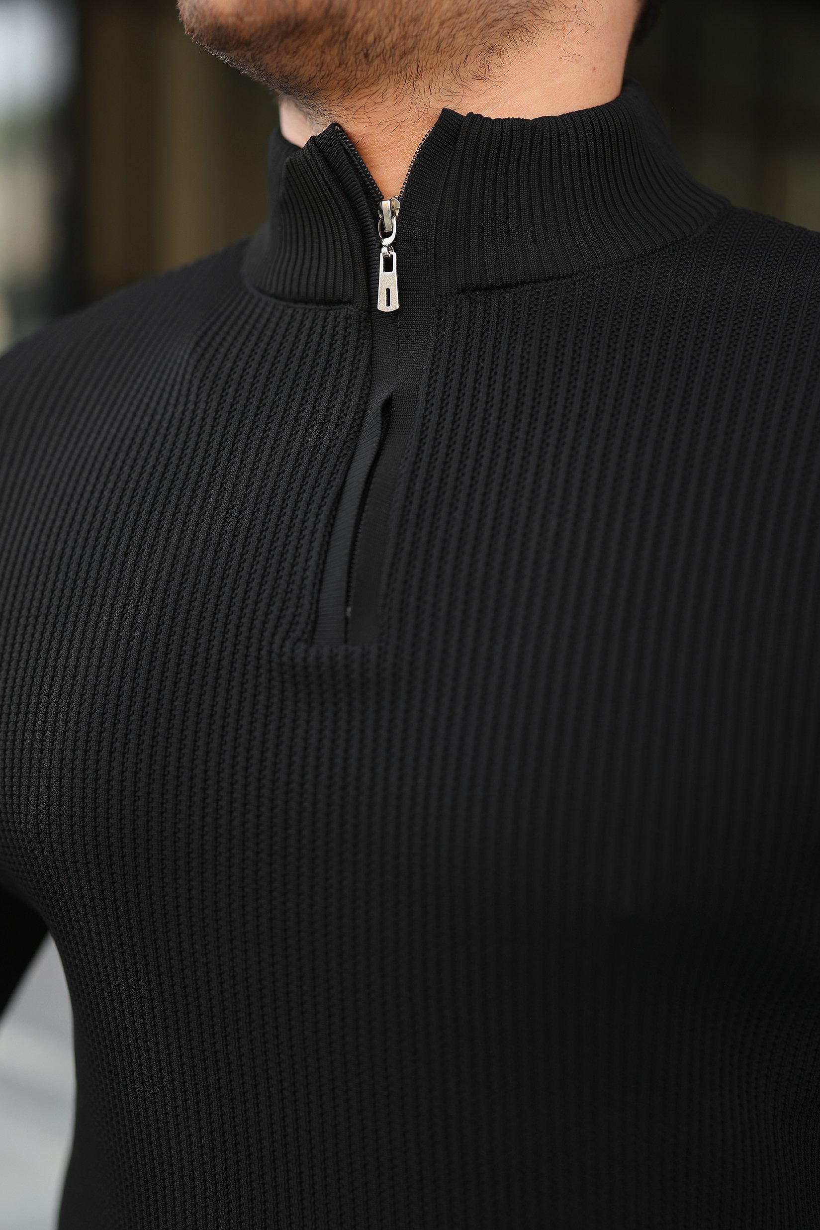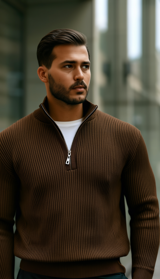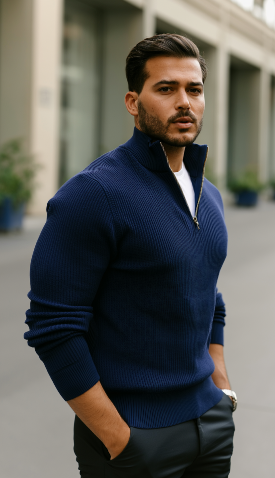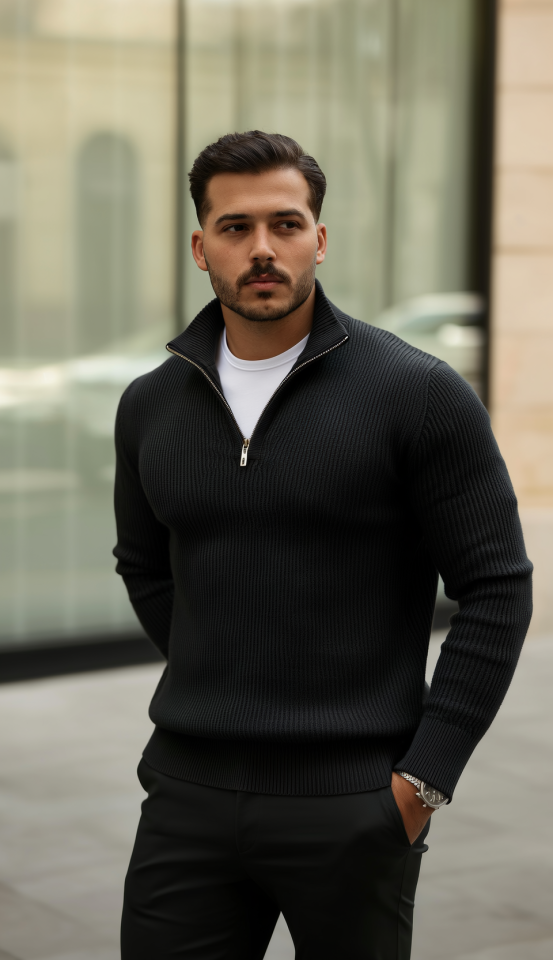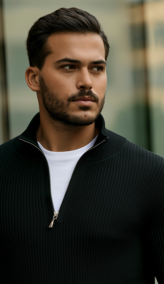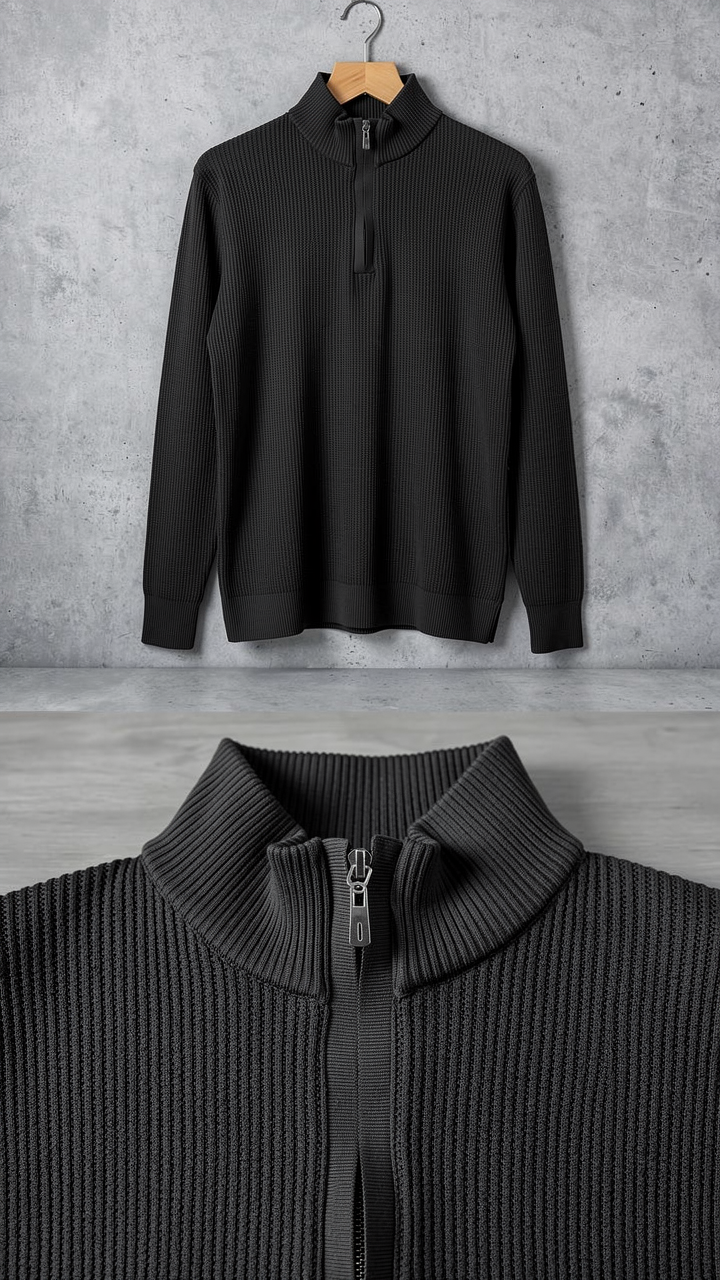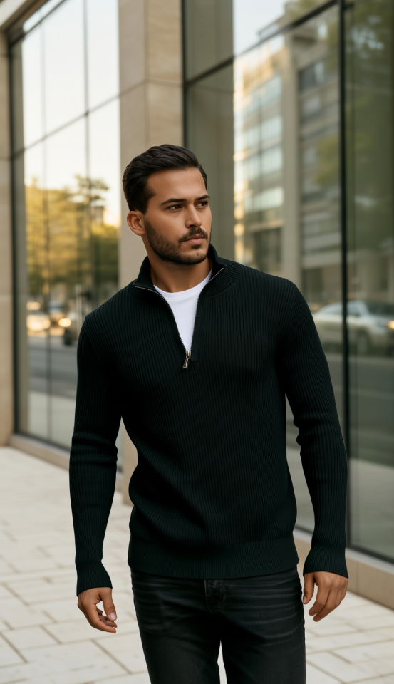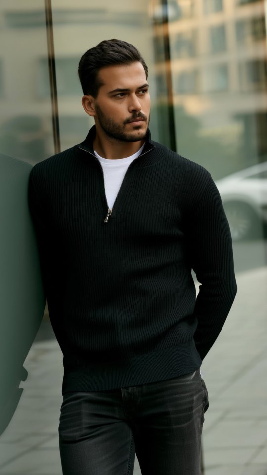 Erkek Balıkçı Zip Yaka Uzun Kollu Triko