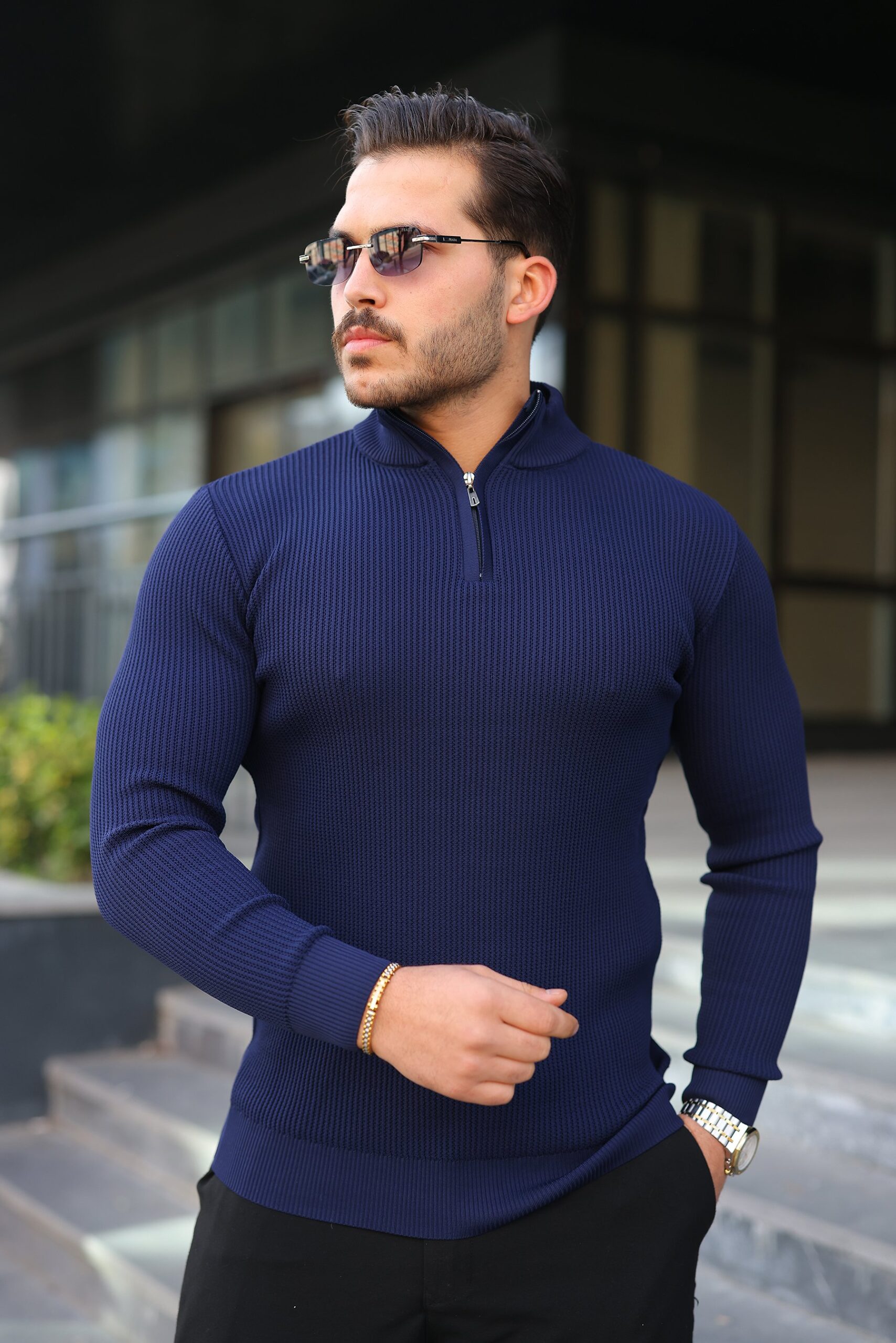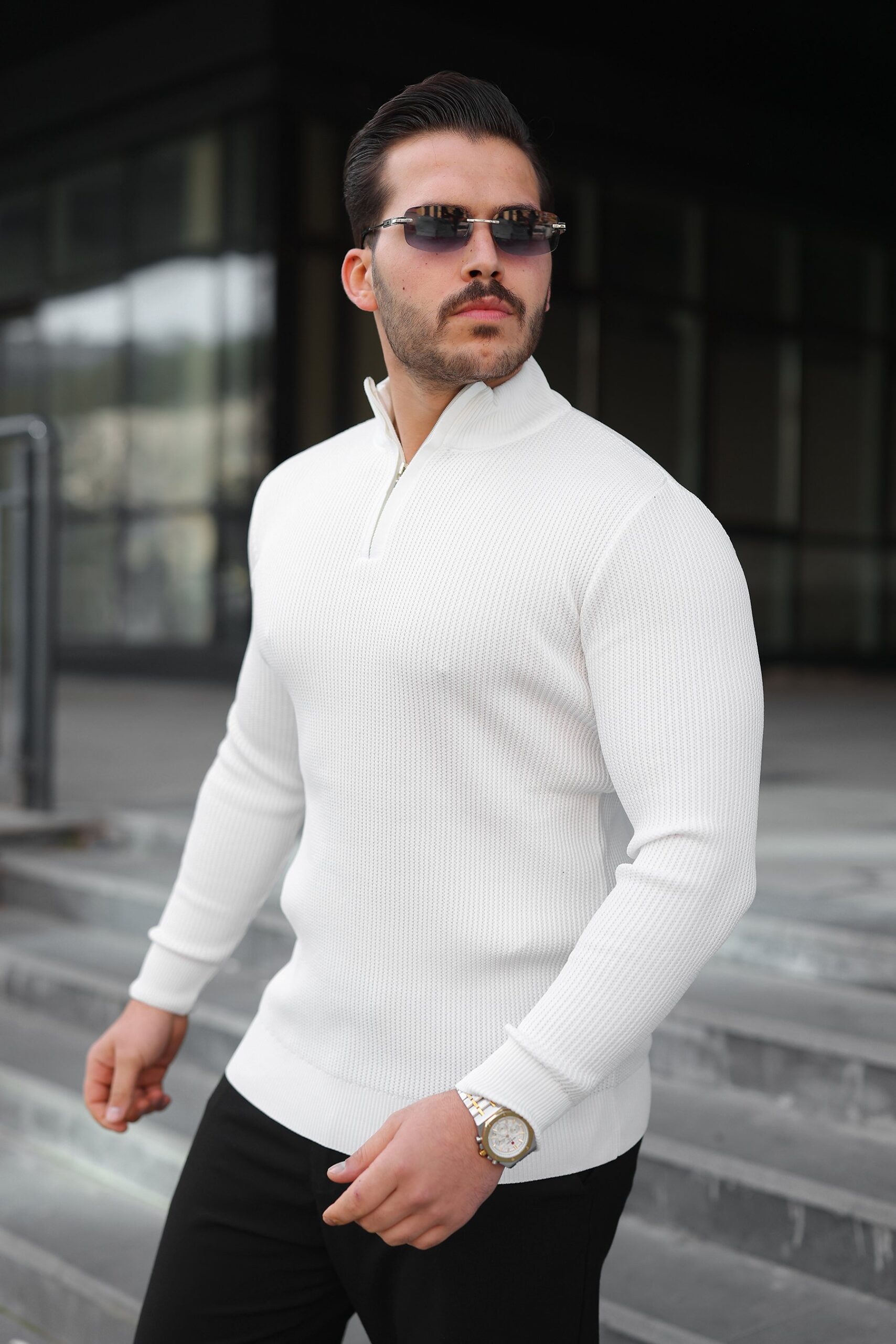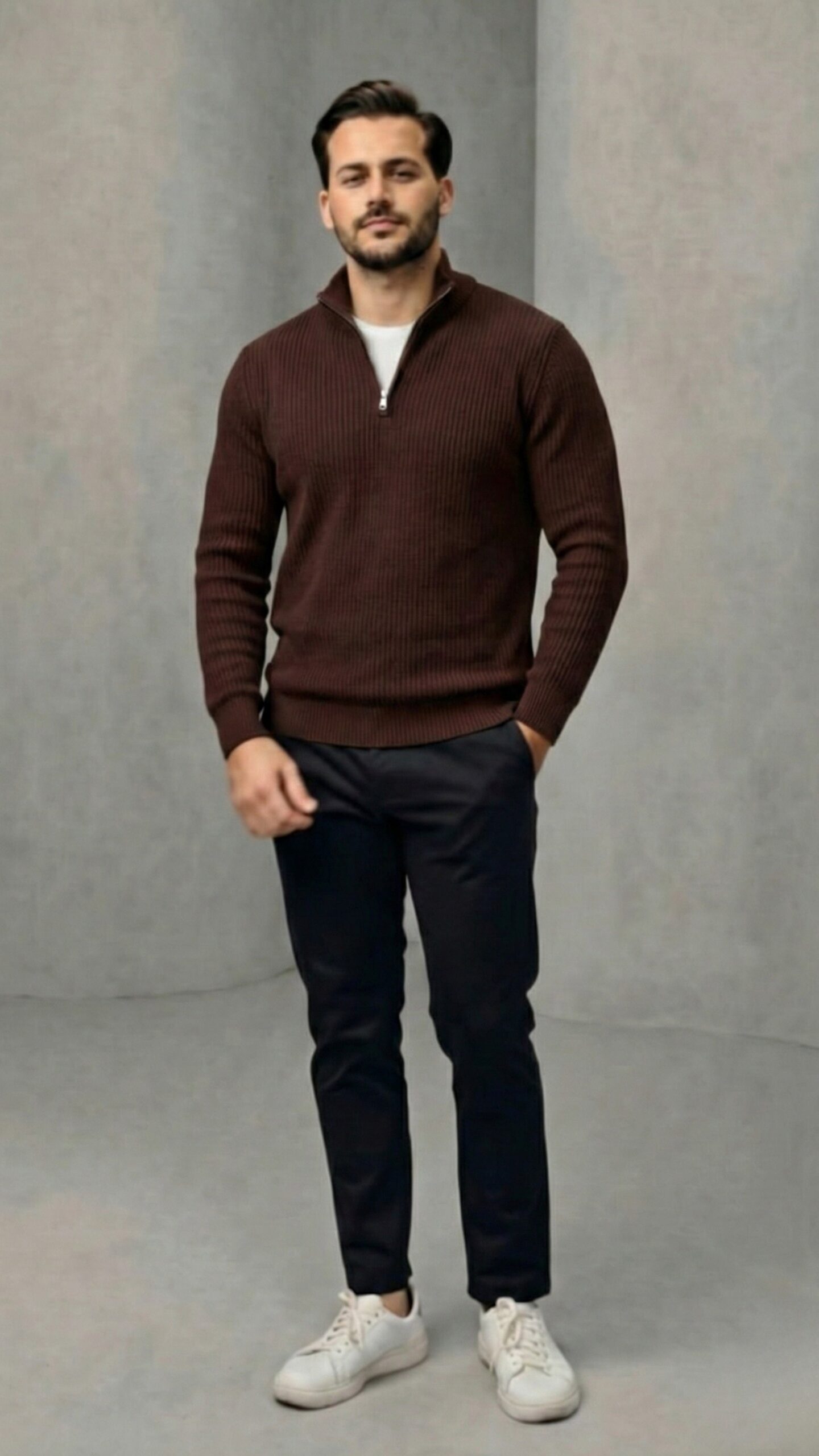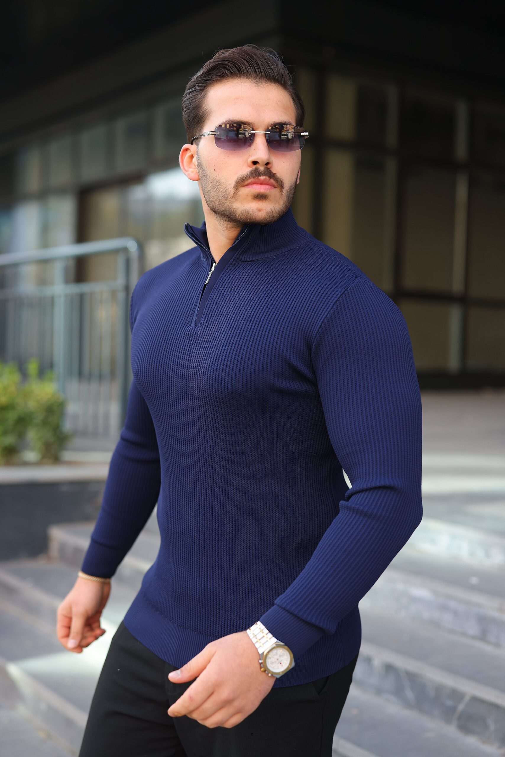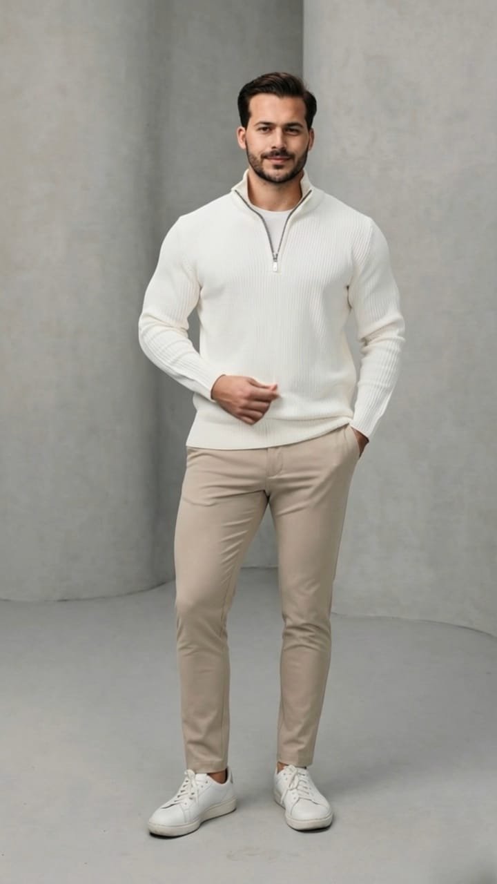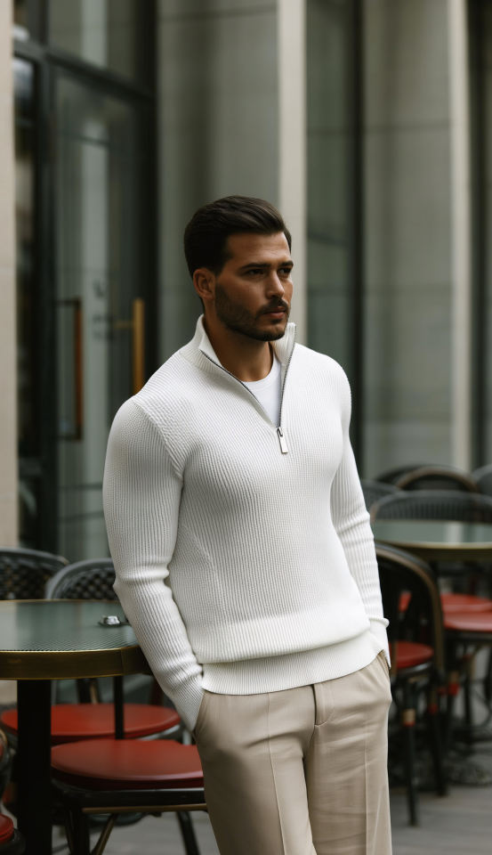 Erkek Balıkçı Zip Yaka Uzun Kollu Triko