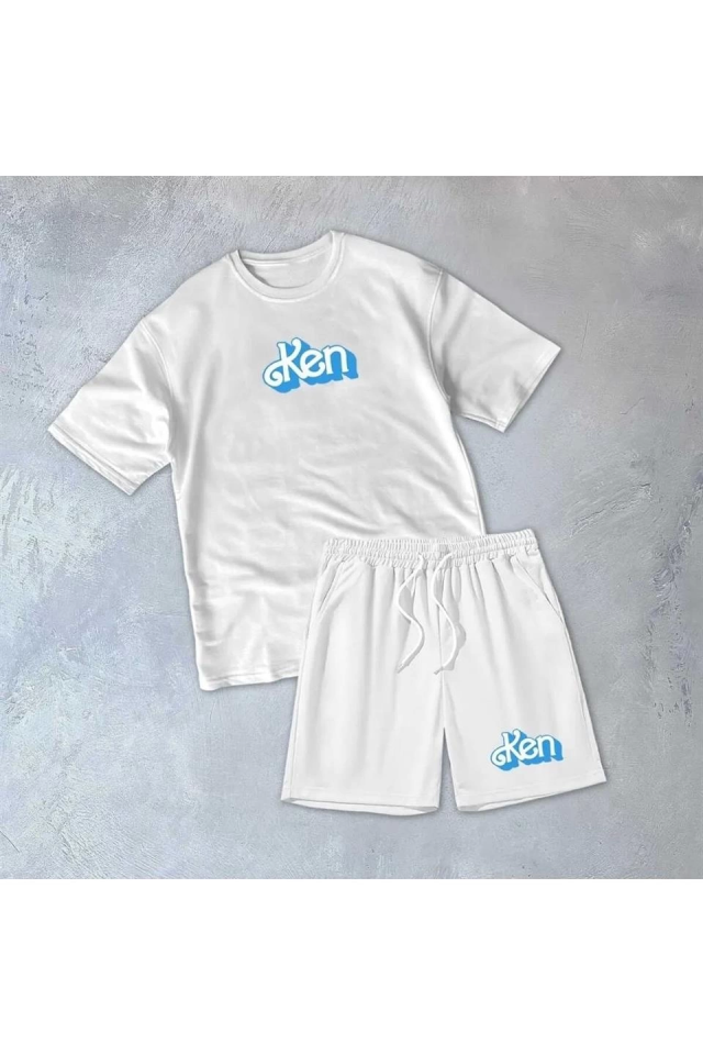 Erkek Baskılı İkili Şort Takım – Beyaz