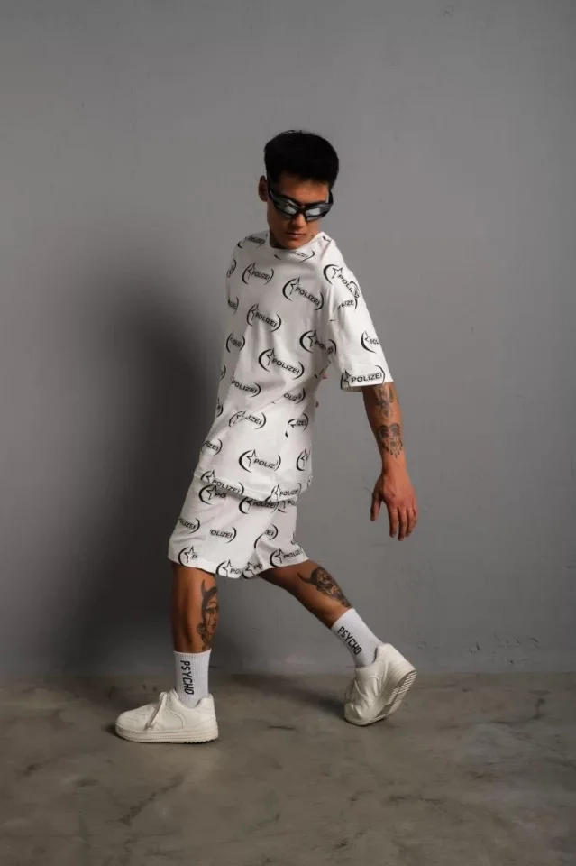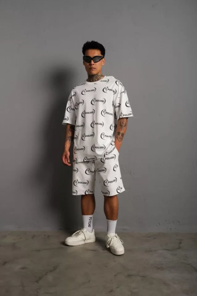 Erkek Baskılı İkili Şortlu Takım – Beyaz