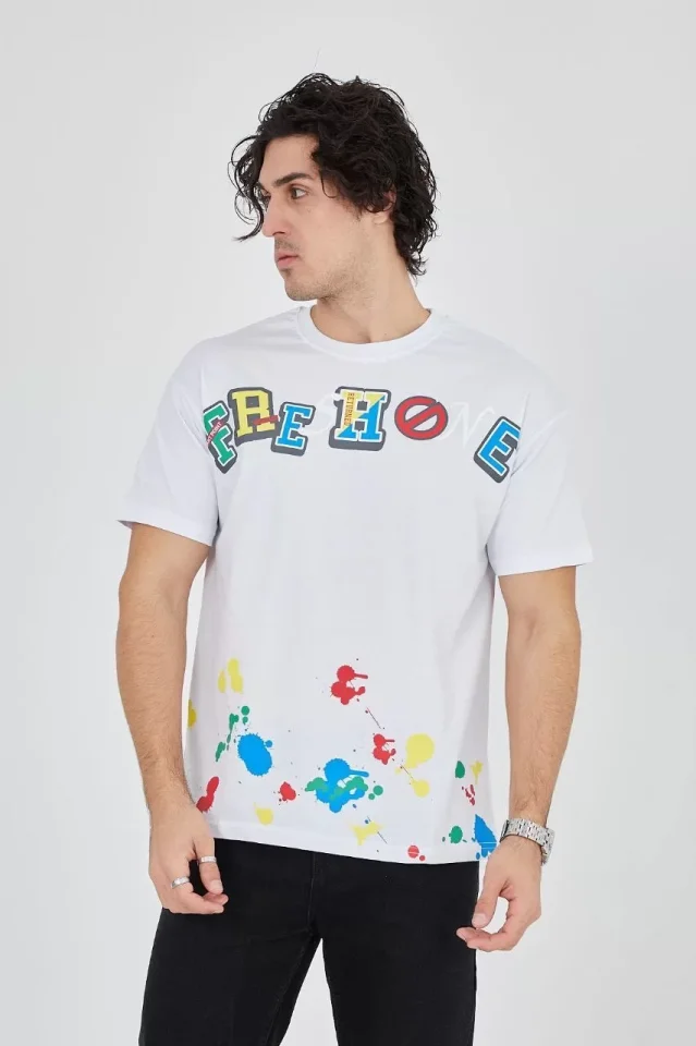 Erkek Baskılı Penye T-Shirt – Beyaz