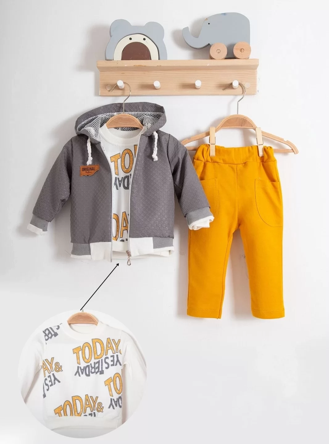 Erkek Bebek Today Baskılı Yağmurluk 3’Lü Takım