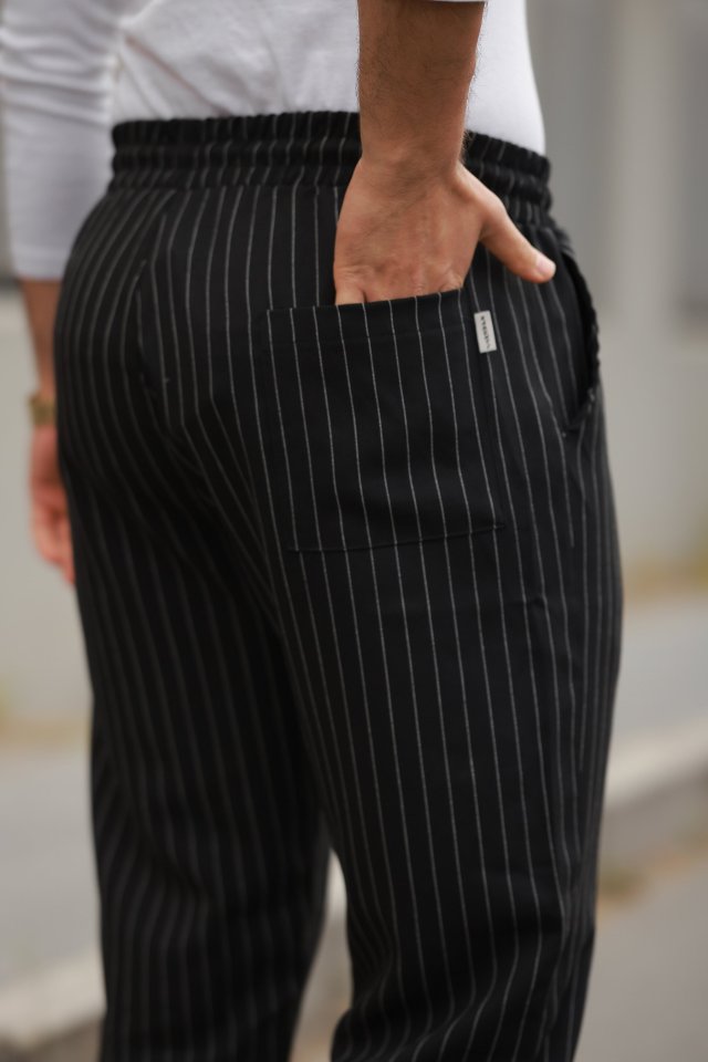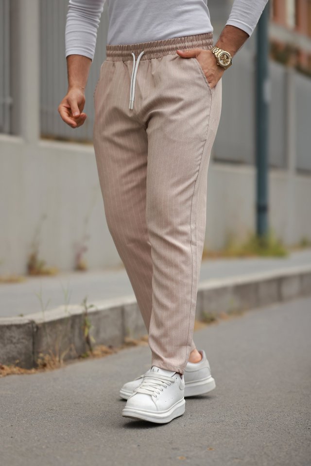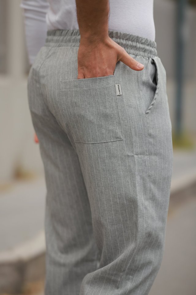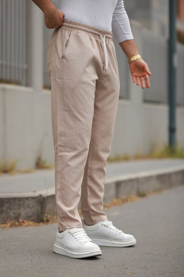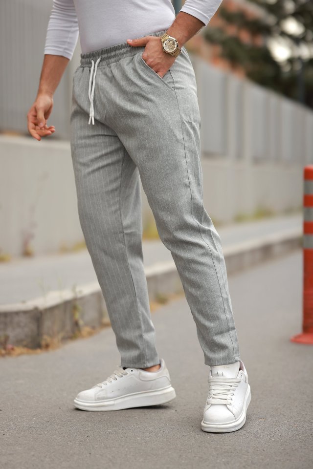 Erkek Beli Bağcıklı çizgili Pantolon