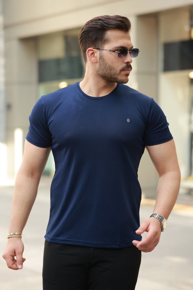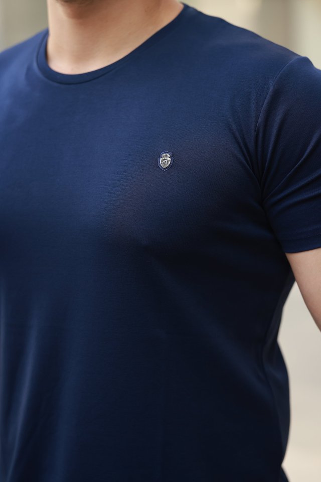 Erkek Bisiklet Yaka Arma Detaylı Basic Kısa Kollu Tişört