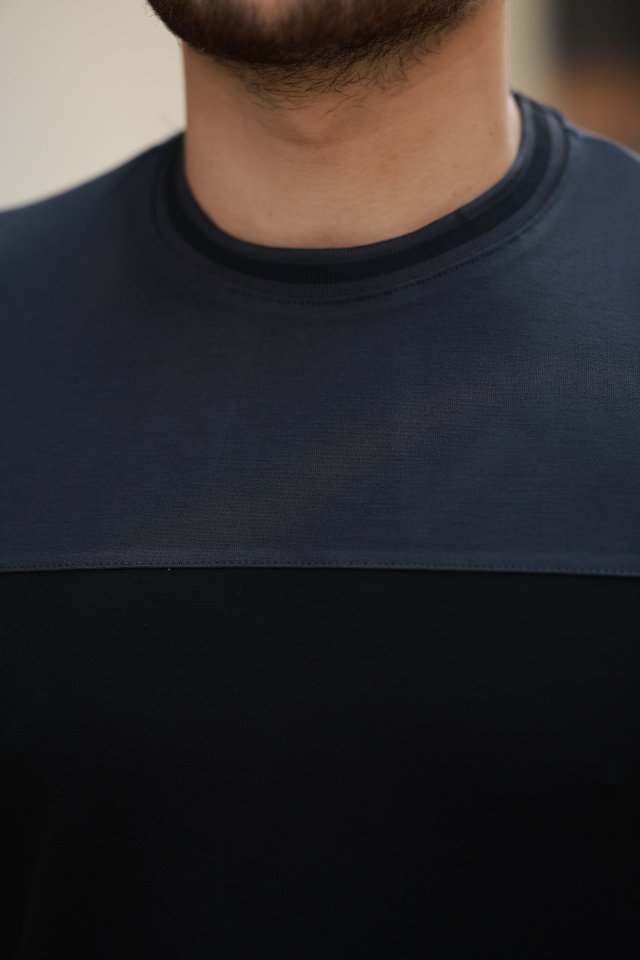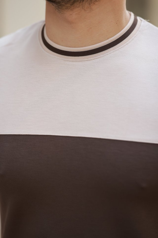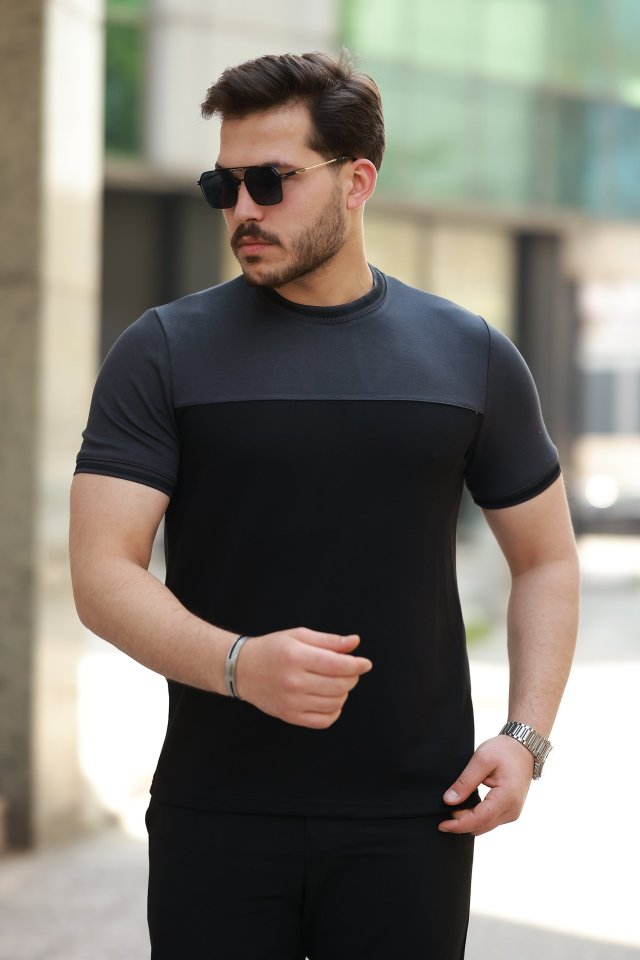 Erkek Bisiklet Yaka Parçalı Renk Kısa Kollu Tshirt