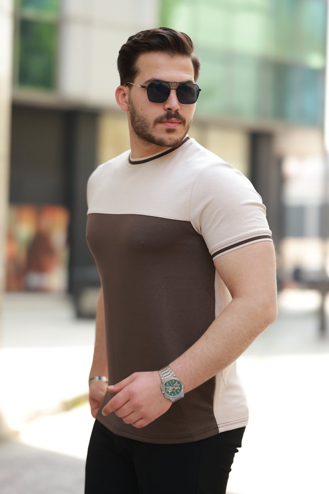 / Erkek Bisiklet Yaka Parçalı Renk Kısa Kollu Tshirt