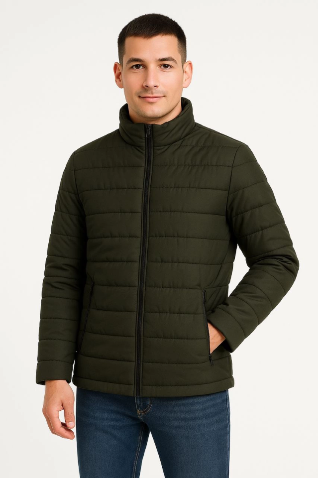 Erkek Bomber Mont Ceket – Su İtici Kumaş, Kapitone Astarlı, Fermuarlı, Kışlık – Haki