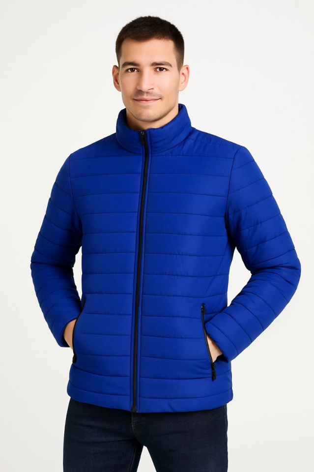Erkek Bomber Mont Ceket – Su İtici Kumaş, Kapitone Astarlı, Fermuarlı, Kışlık – Saks Mavisi