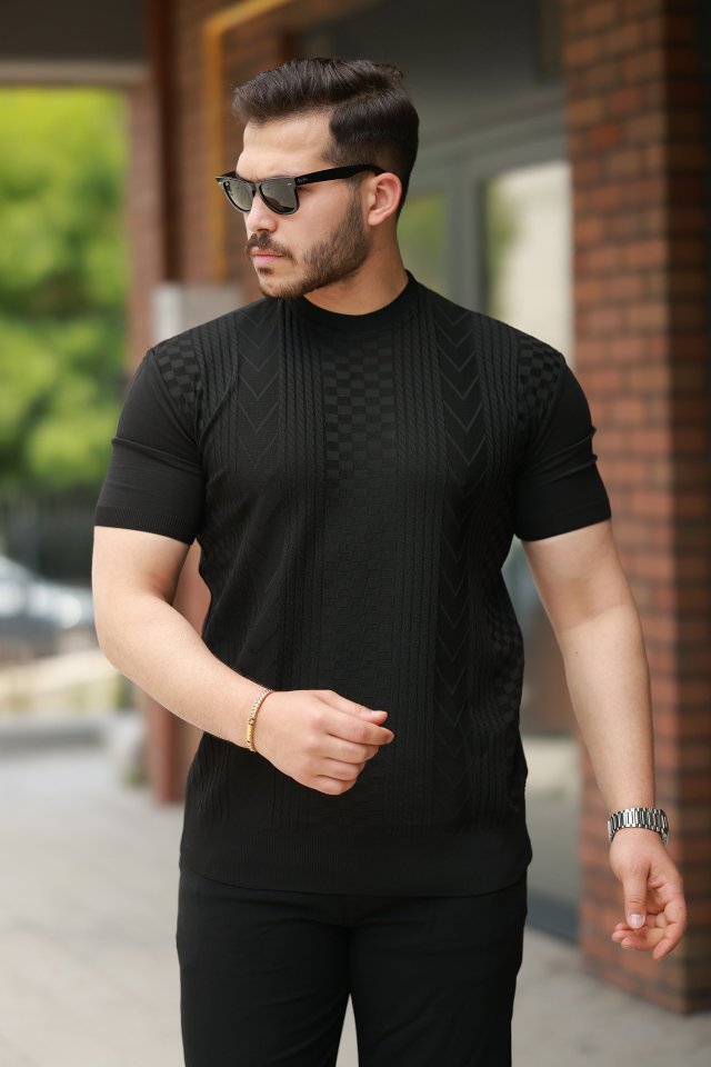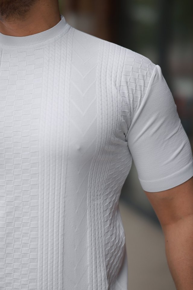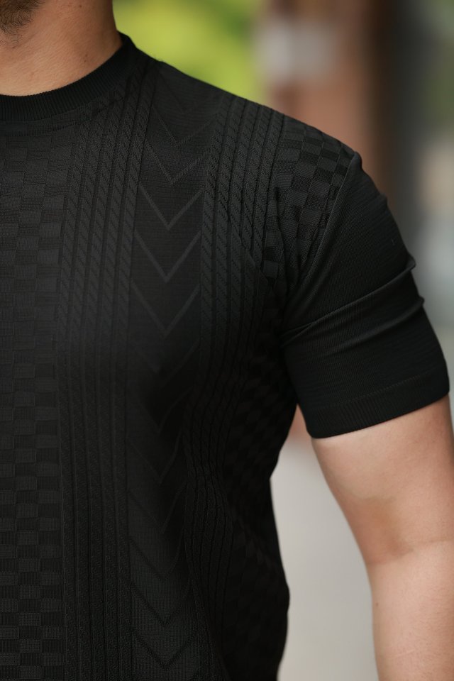 Erkek Desen Dokulu Kısa Kollu Tişört