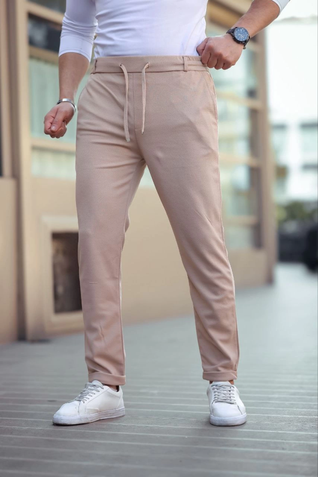 Erkek Diagonel Mikro Dokulu Cepli Beli Lastilki Pantolon – Kahverengi