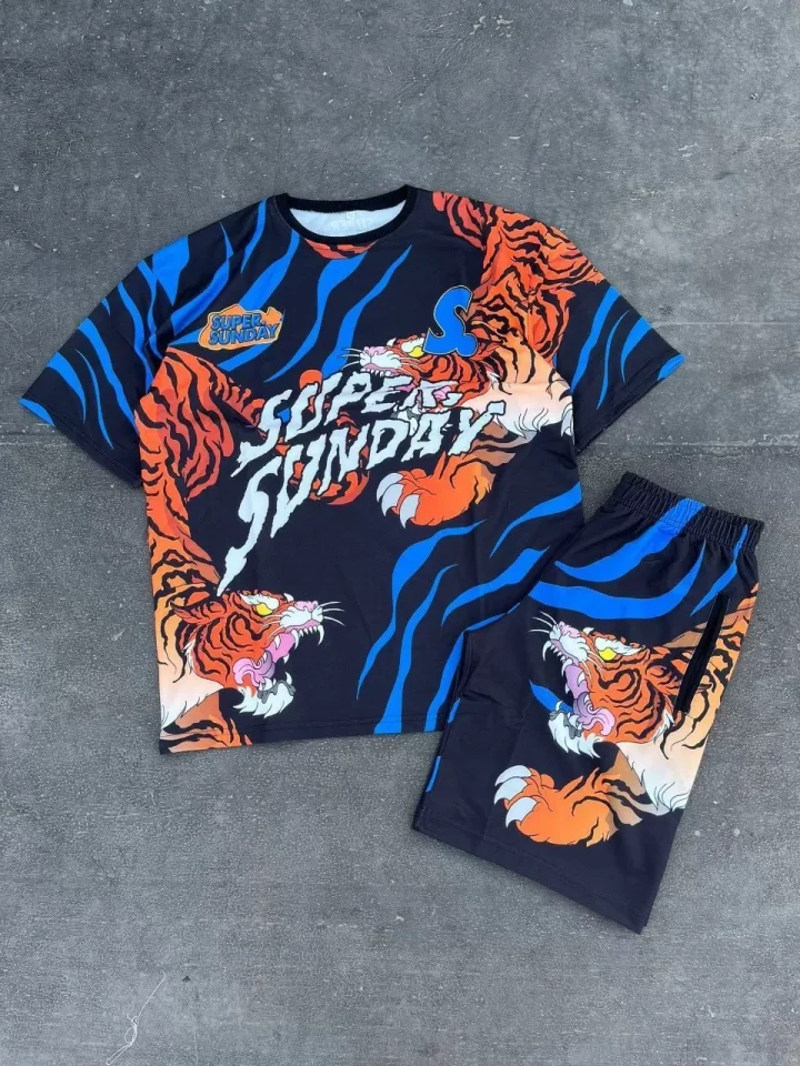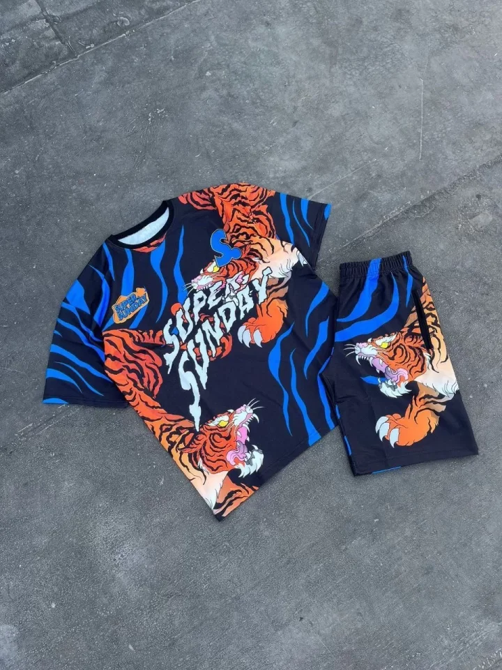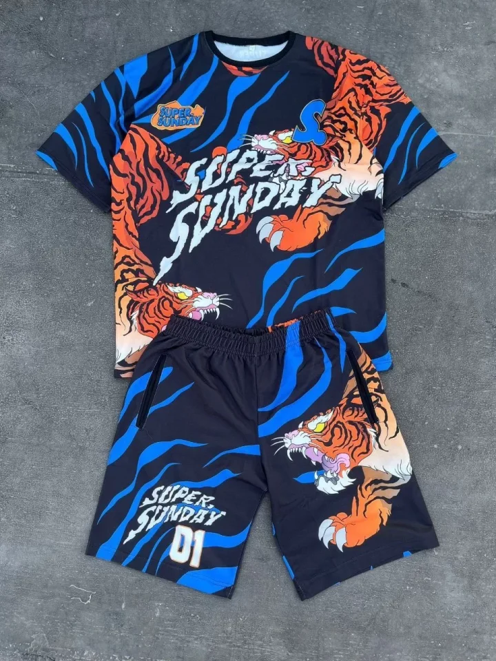 Erkek Dijital Baskılı Şortlu Takım – Mavi