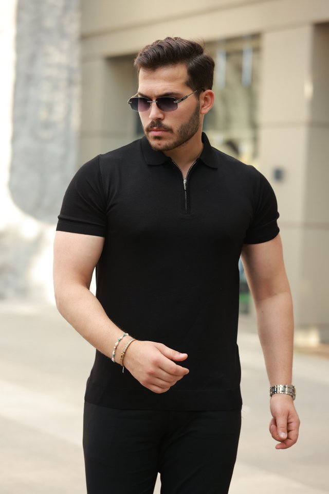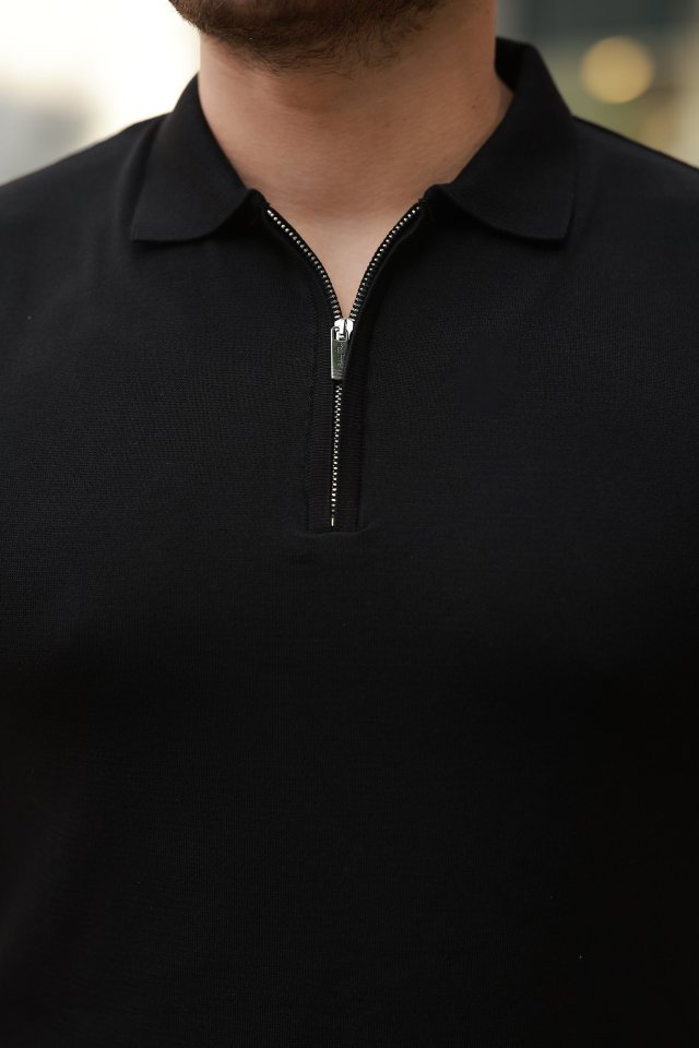 Erkek Fermuar Yakalı Kısa Kollu Tişört