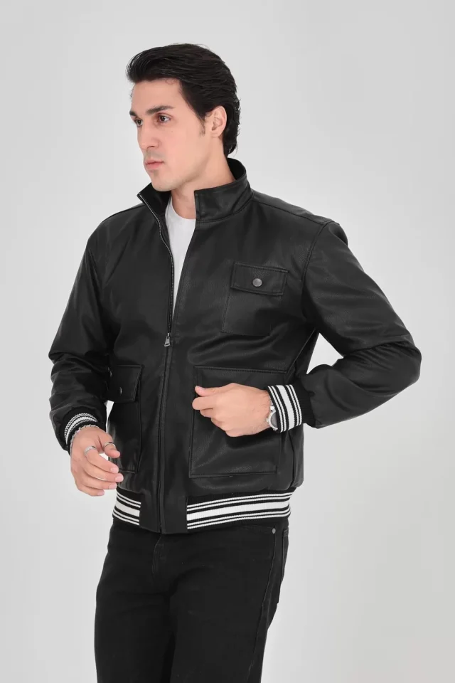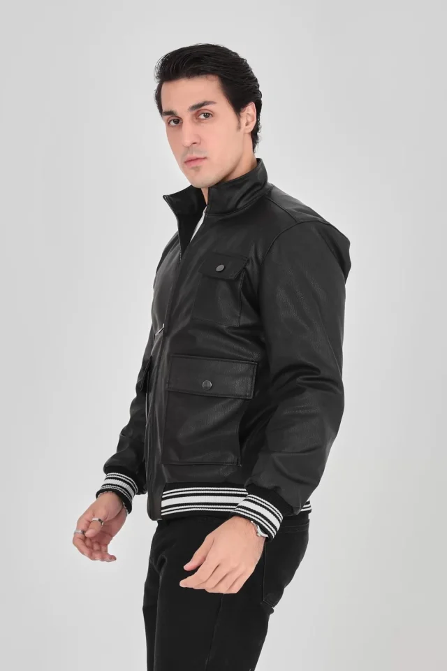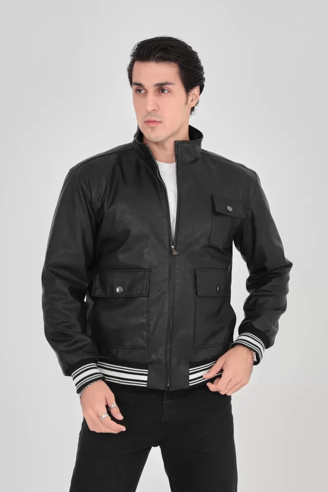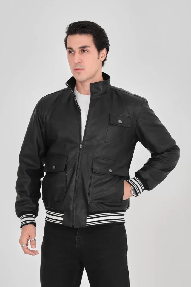 Erkek Fermuarlı İçten Elyaf Ve Astarlı Suni Deri Ceket – Siyah