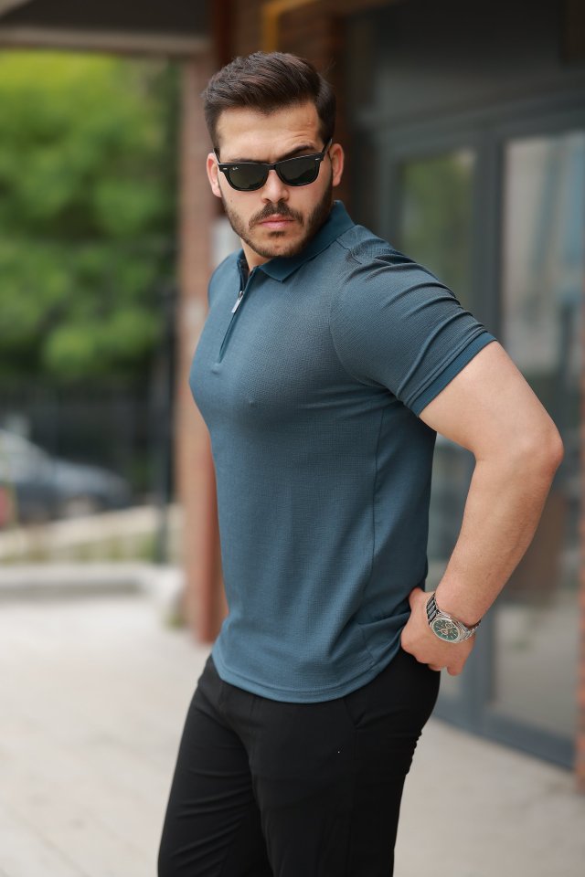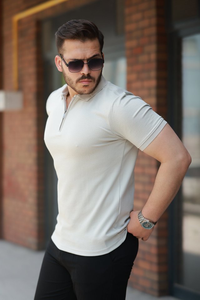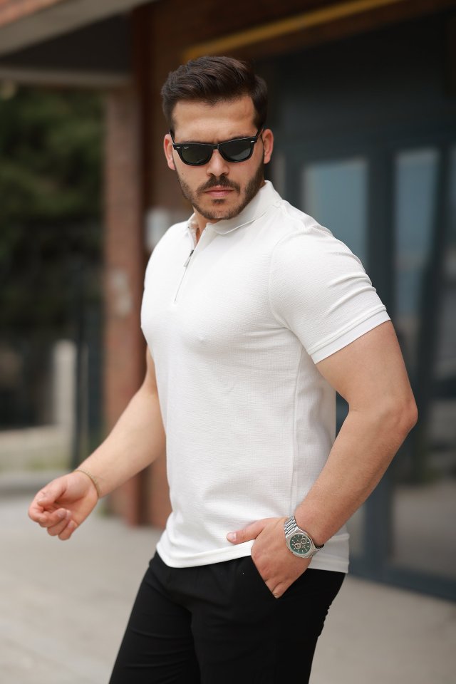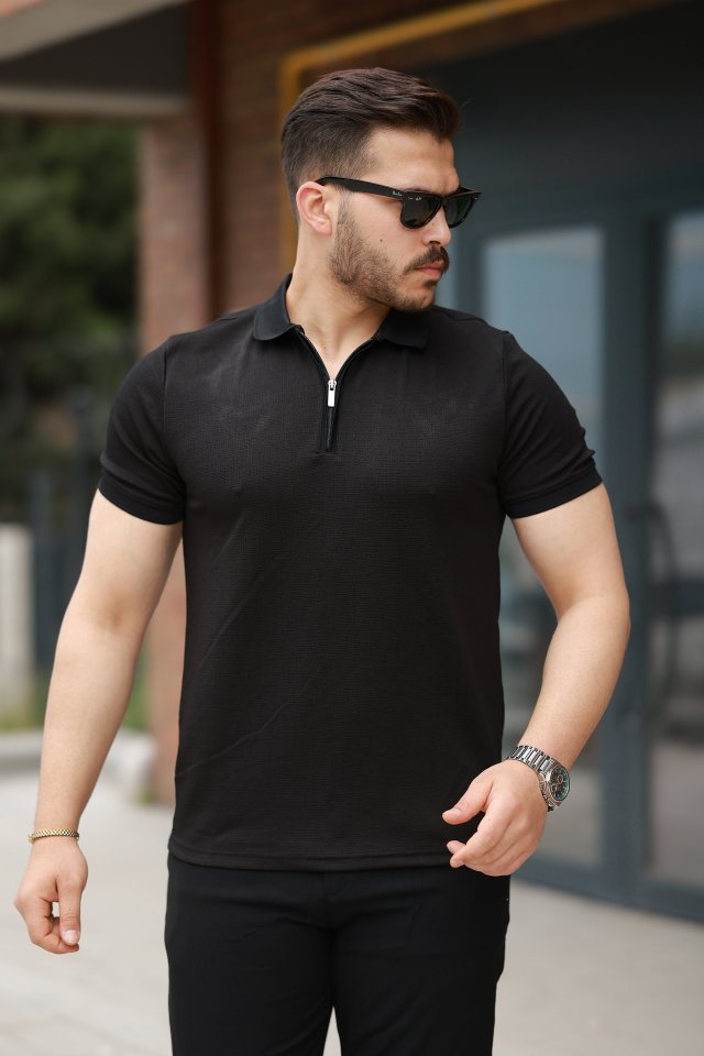 Erkek Fermuarlı Yaka Kısa Kollu Tişört