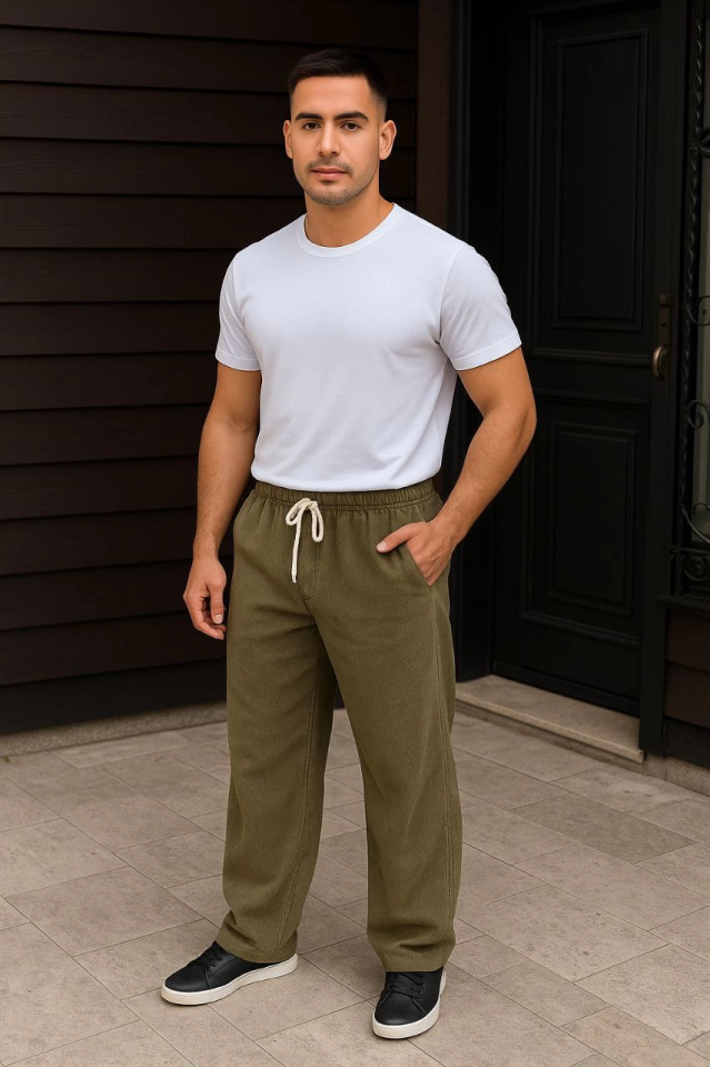 Erkek Fitilli Kadife Cepli Buggy Pantolon Oversize Rahat Kalıp – Haki