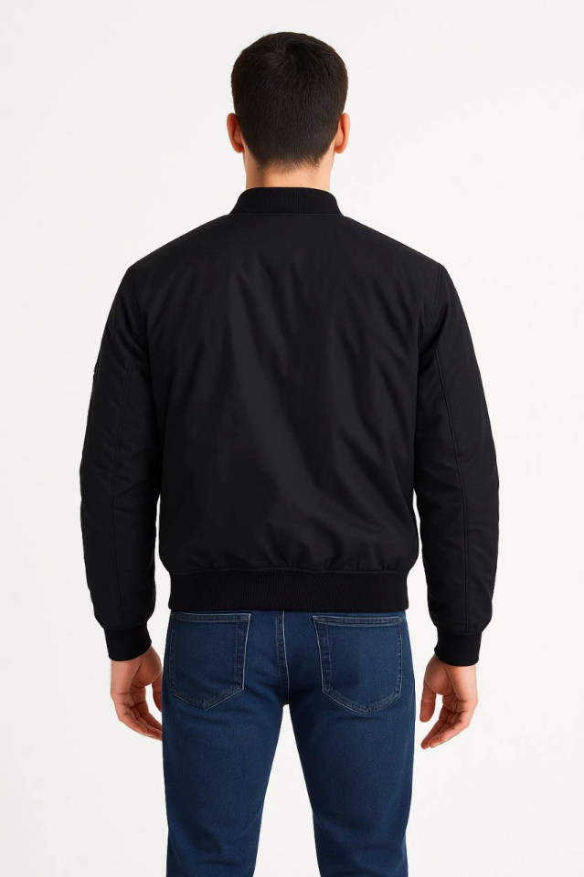 Erkek Içi Astarlı Fermuarlı Bomber Mont Ceket – Siyah