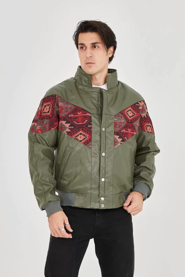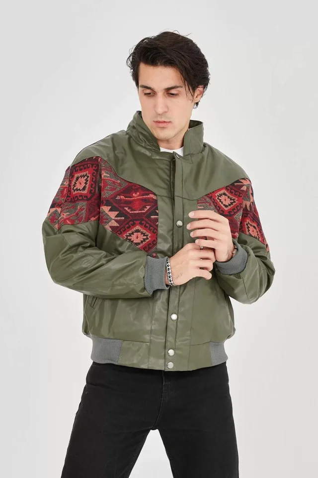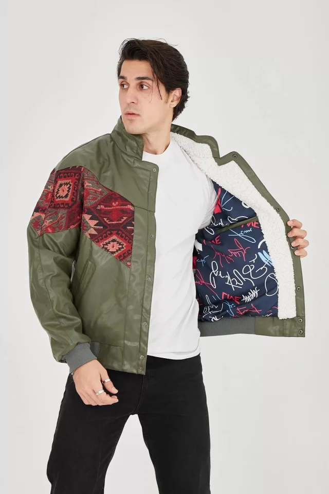Erkek İçi Astarlı İçten Yaka Kısmı Peluşlu Suni Kumaş Vintage Ceket – Haki