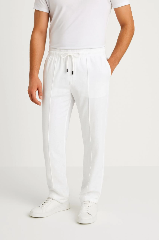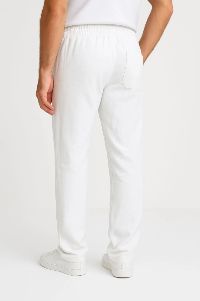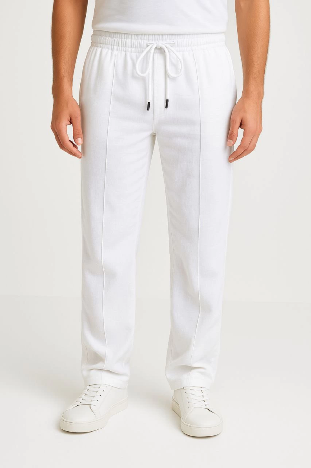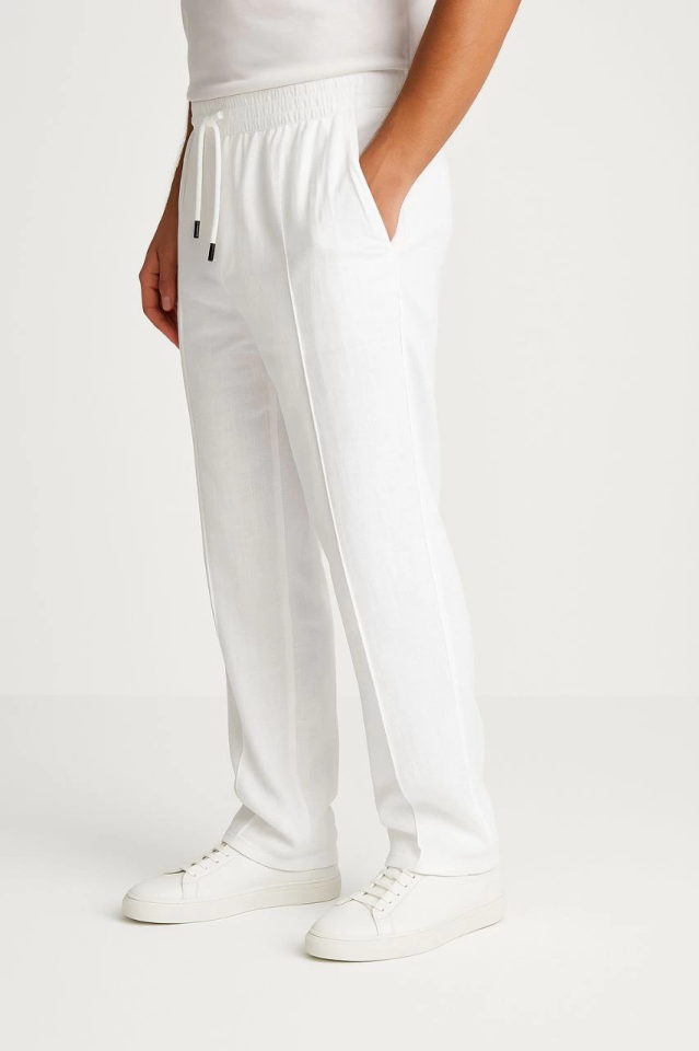 Erkek Keten Pantolon – Cepli, Beli Lastikli Ve Bağcıklı, Nefes Alan Rahat Kalıp, Yazlık Ve Baharlık Günlük Giyim, Şık – Konforlu Boru Paça Model – Beyaz