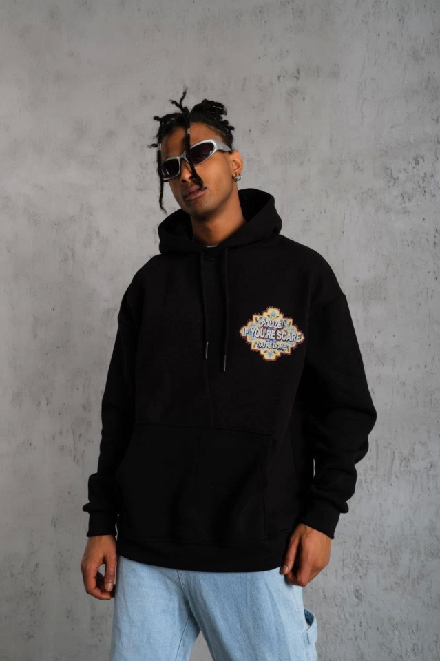 Erkek Kilim Desen Kapüşonlu – Siyah