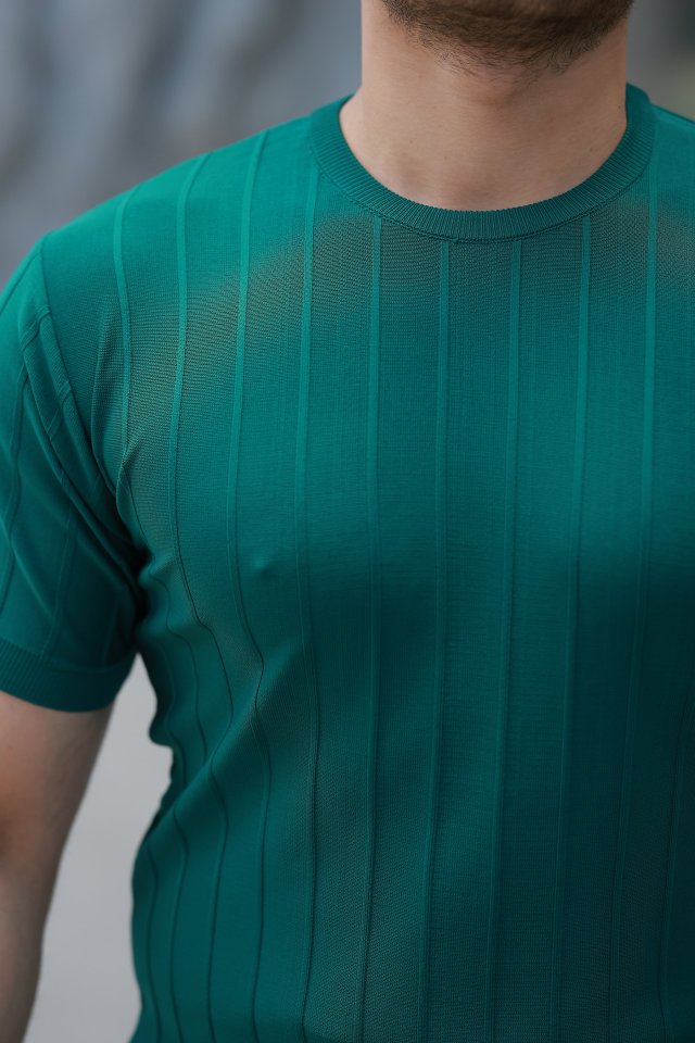 Erkek Kısa Kollu Bisiklet Yaka çizgili Triko Tişört