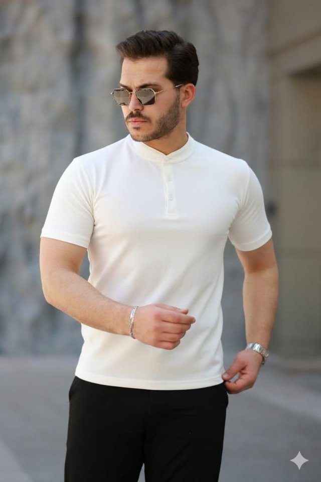 Erkek Kısa Kollu Hakim Yaka önü Düğmeli Viskon Bluz