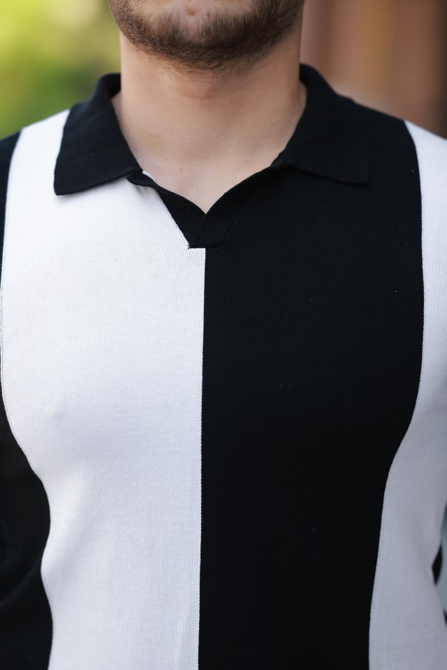 Erkek Kısa Kollu Polo Yakalı Blok Desenli Triko Bluz