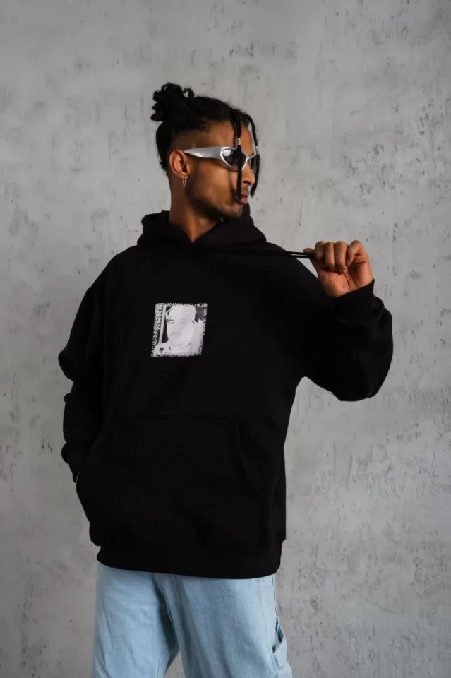 Erkek Ön Arka Baskılı Kapşonlu Sweat – Siyah
