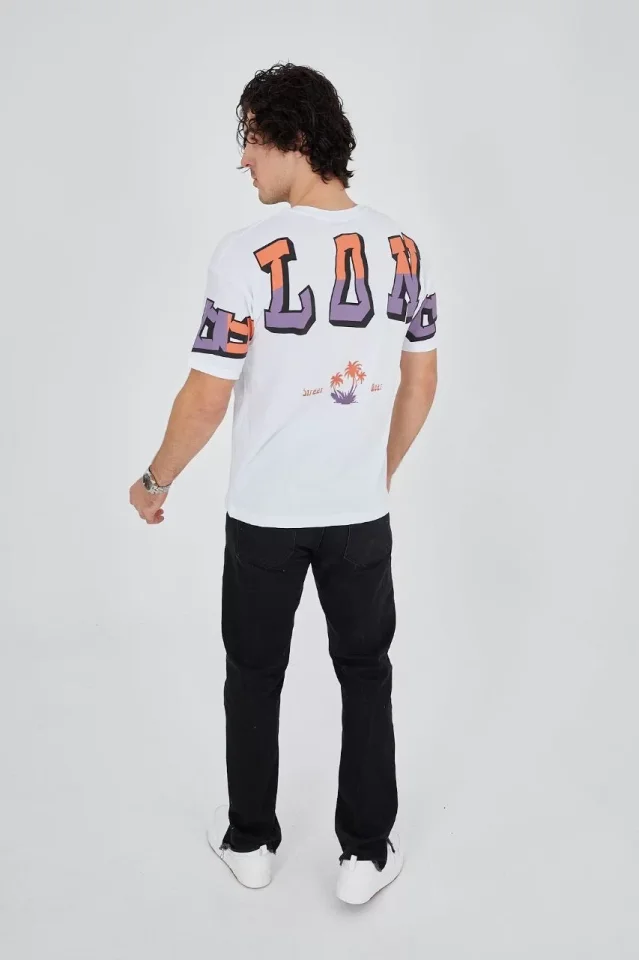 Erkek Ön Ve Arka Baskılı T-Shirt – Beyaz