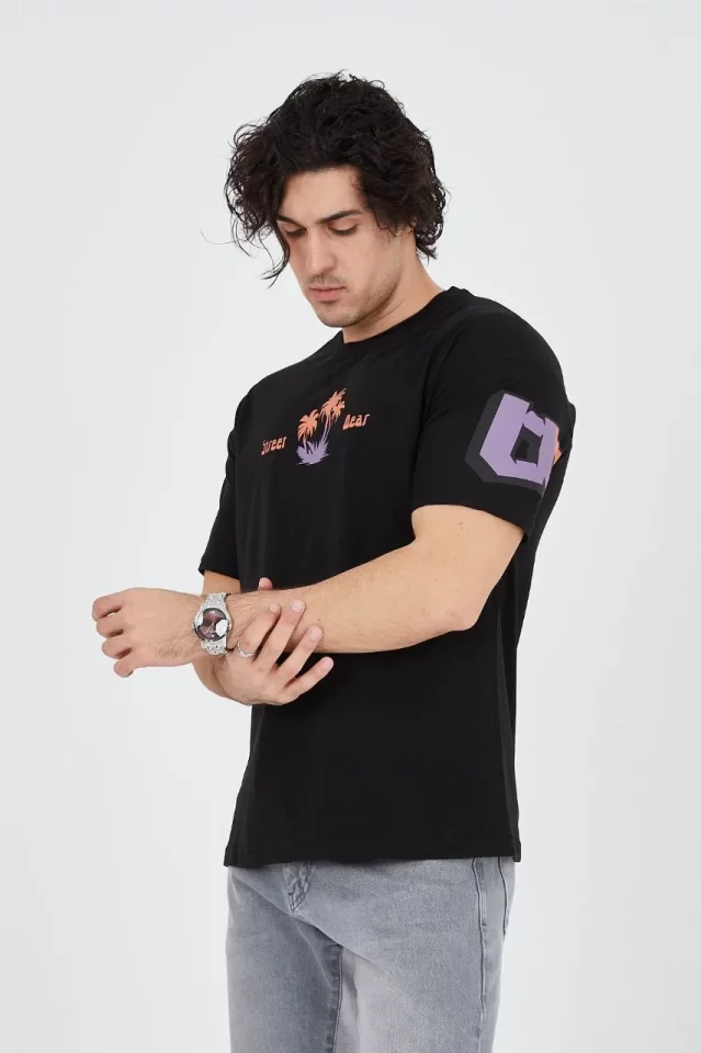 Erkek Ön Ve Arka Baskılı T-Shirt – Siyah
