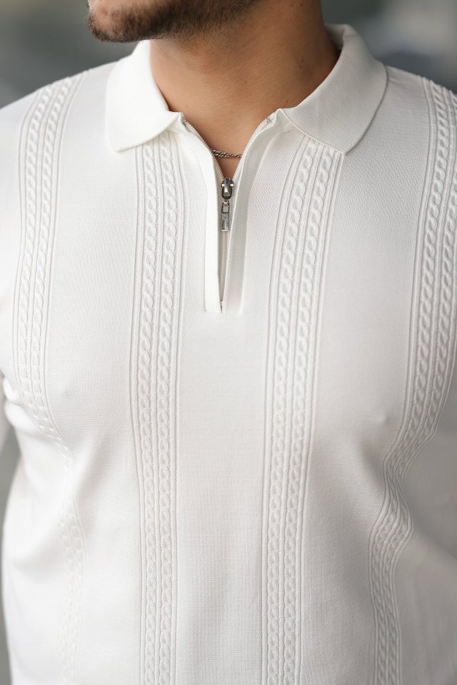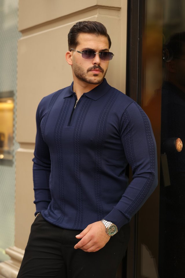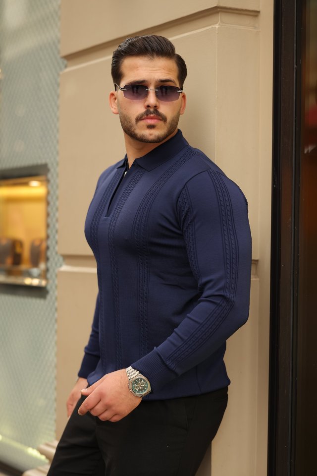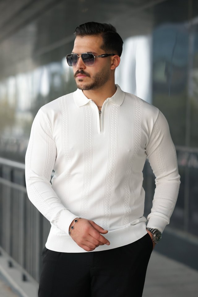 Erkek örgü Desen Fermuar Yaka Uzun Kollu Triko