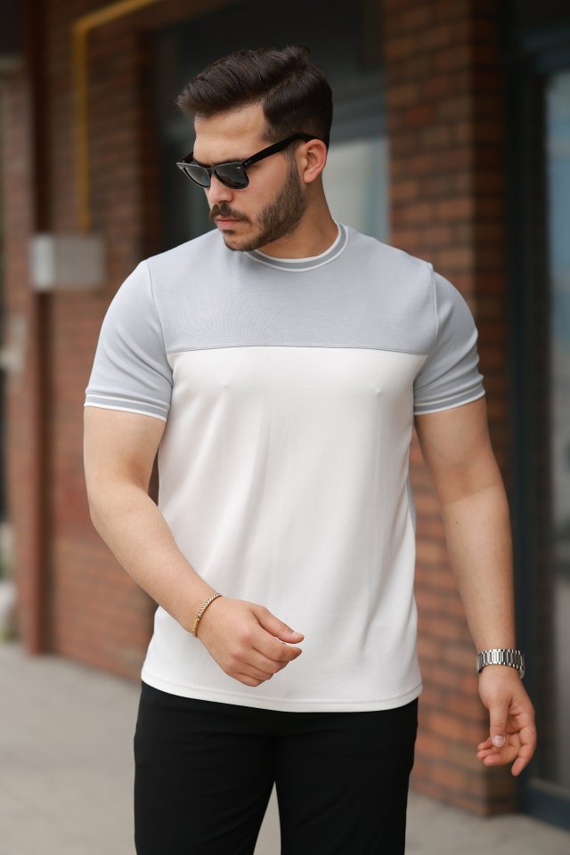 Erkek Parçalı Renk Kısa Kollu Tişört