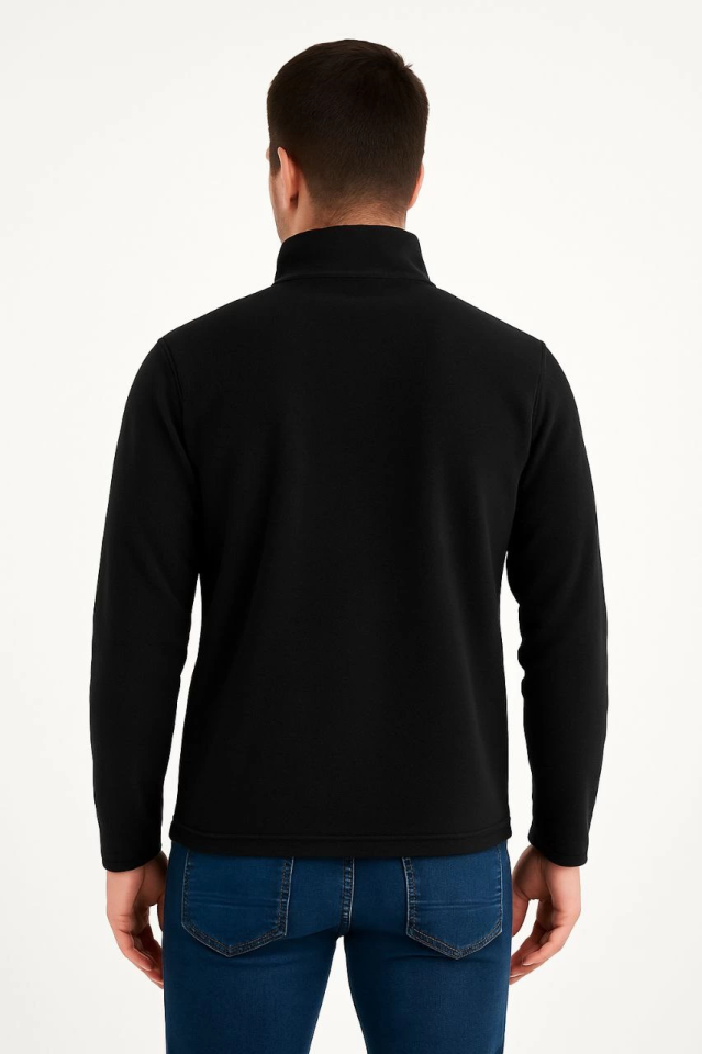 Erkek Polar Kazak – Dik Yaka, Yarım Fermuarlı, Fermuarlı Göğüs Cepli, Siyah Biyeli, Kışlık Rahat Regular Fit Günlük Model – Siyah