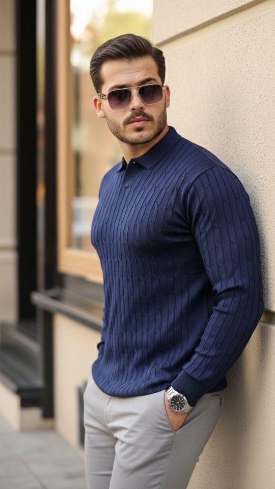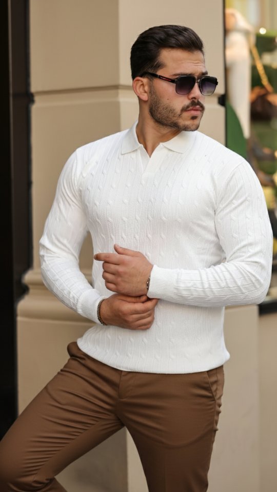 Erkek Saç örgü Desenli Uzun Kollu Triko