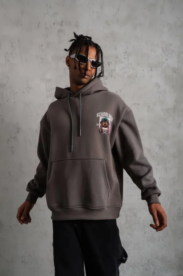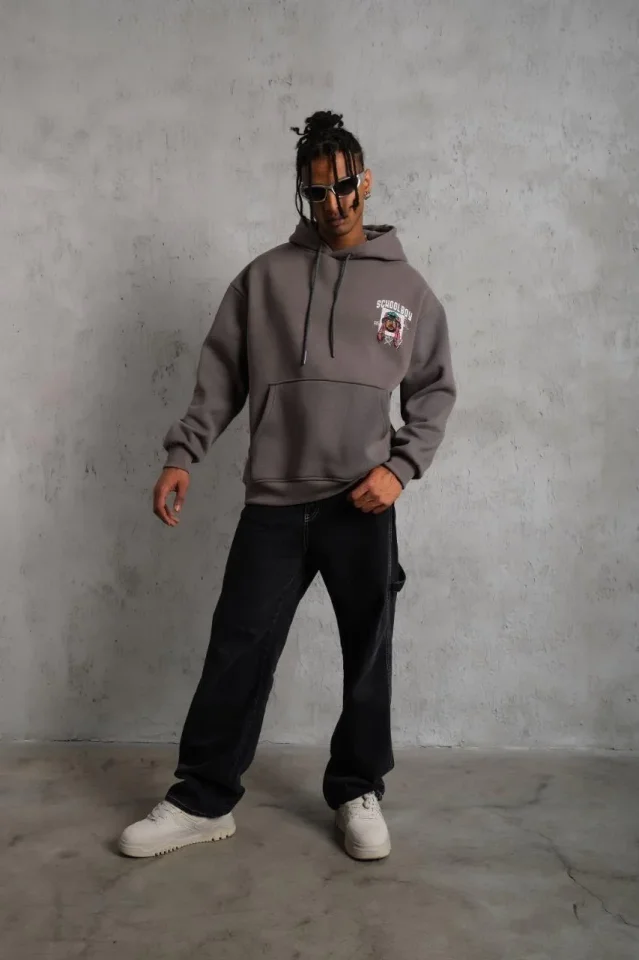 Erkek SCHOOL BOY Baskılı Kapüşonlu Sweat – Gri