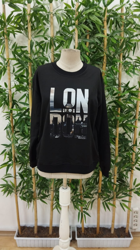 Erkek Uzun Kollu Bisiklet Yaka London Logo Baskılı Iki Iplik Bluz