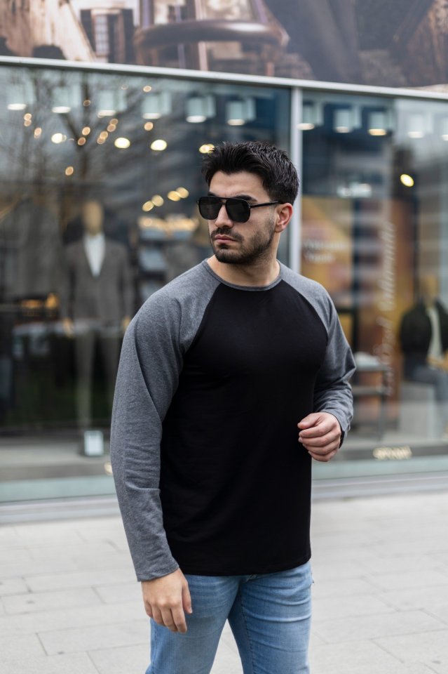 Erkek Uzun Kollu Bisiklet Yaka Viskon Iki Iplik Bluz