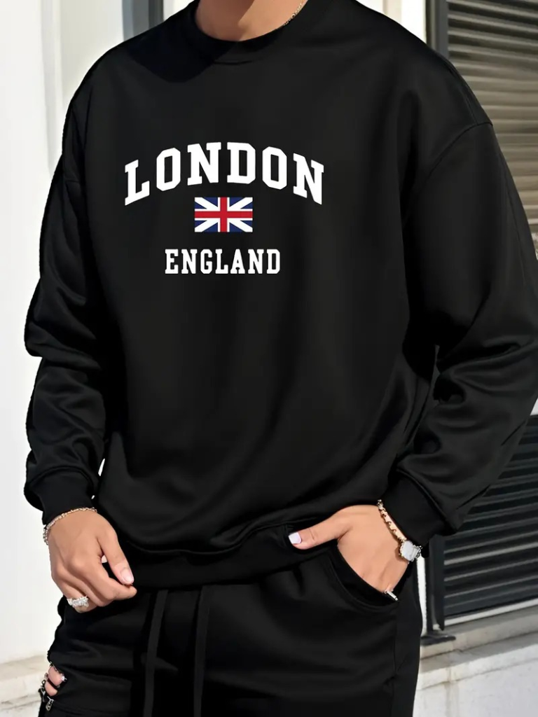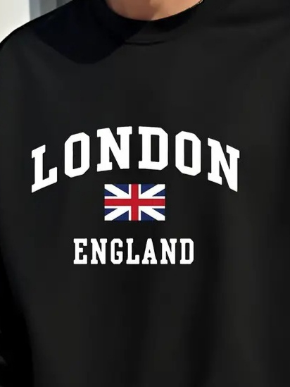 Erkek Uzun Kollu Bisiklet Yaka Yazı Baskılı Iki Iplik Bluz