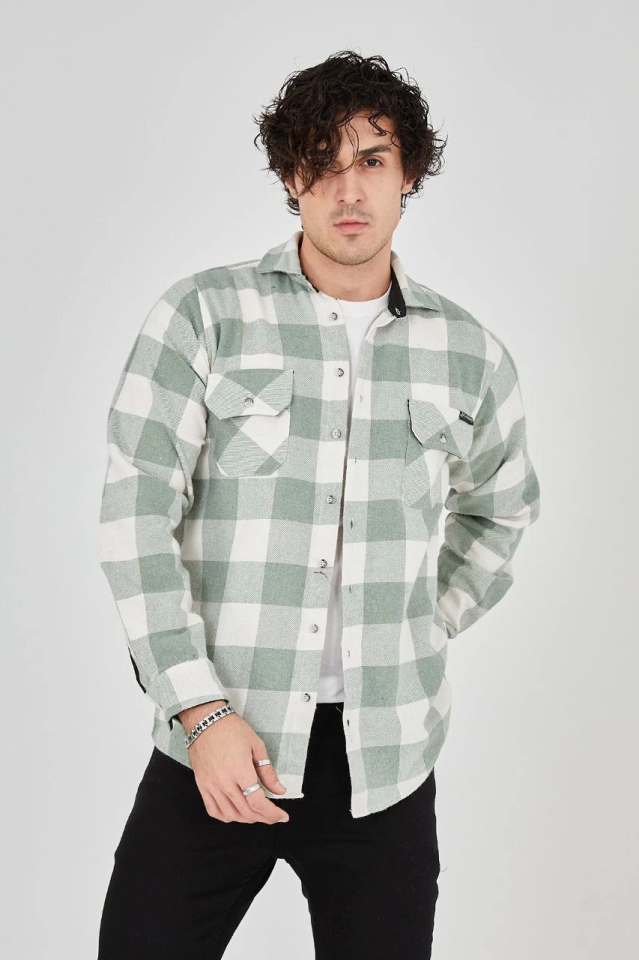 Erkek Uzun Kollu Oduncu Gömlek – Mint Yeşili