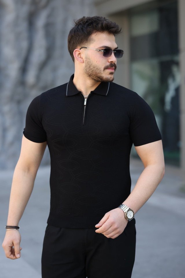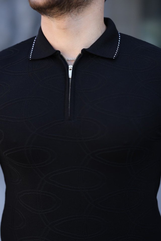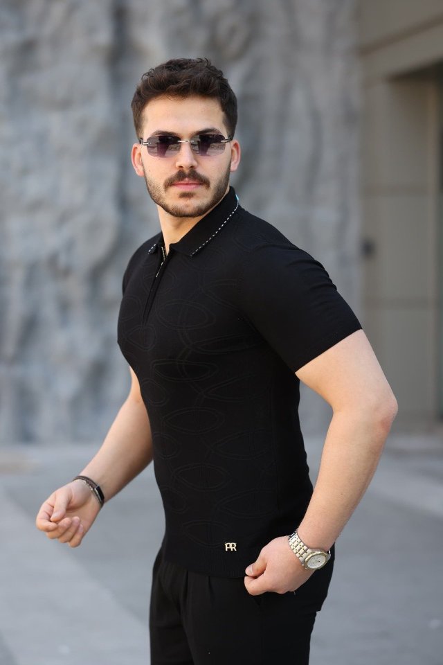 Erkek Viskon Kumaş Polo Yaka Desenli Tişört