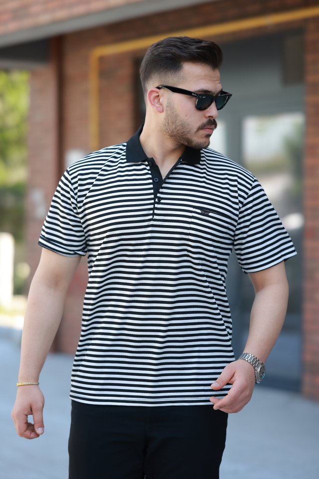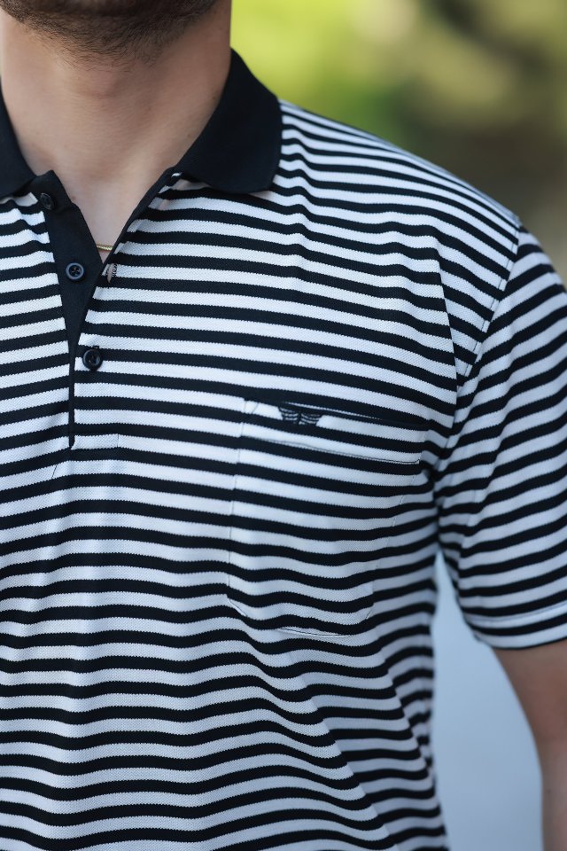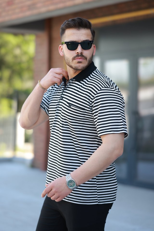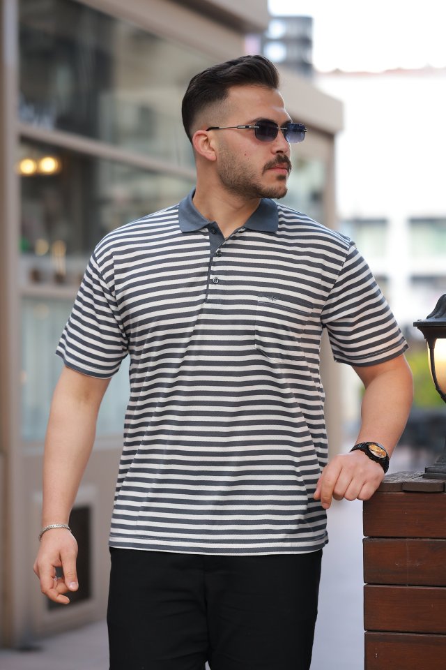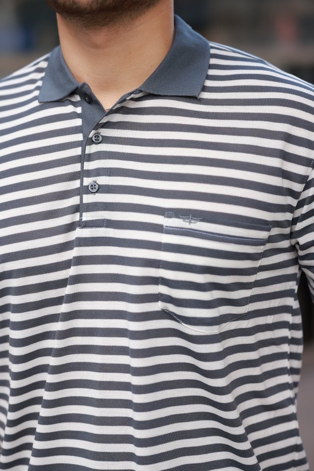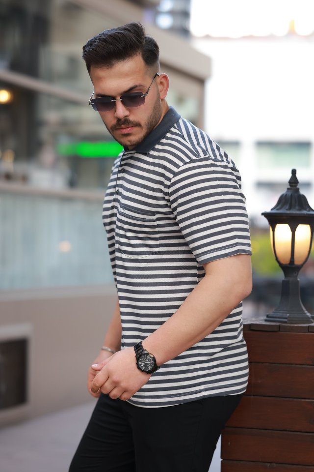 Erkek Yakalı çizgili Kısa Kollu T-shirt