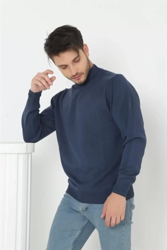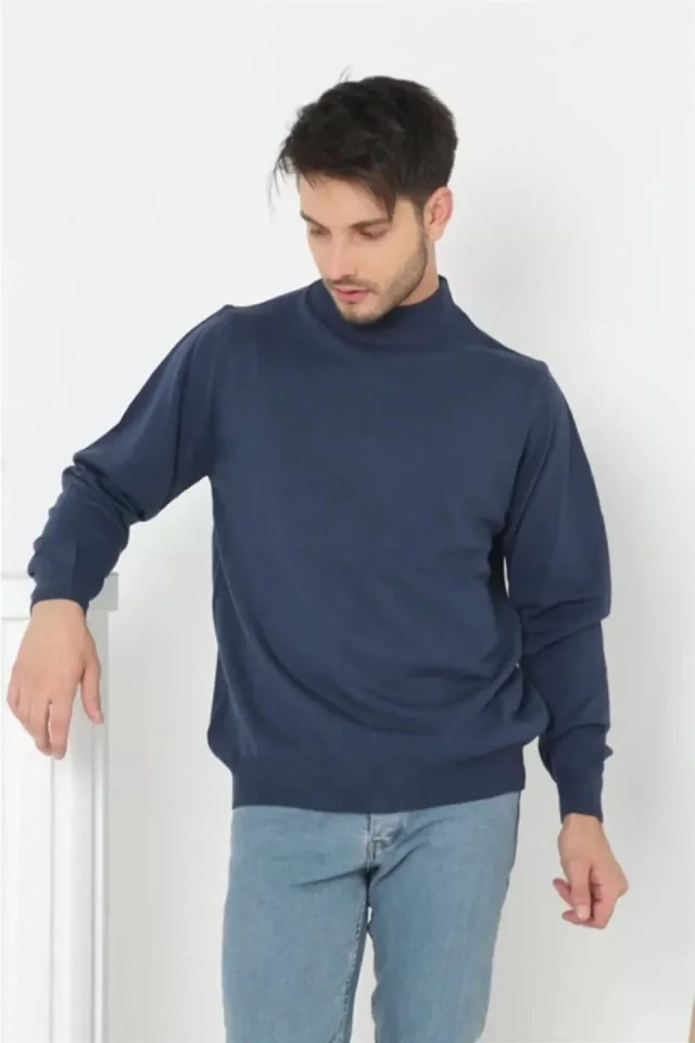 Erkek Yarım Balıkçı Yaka Triko Kazak – İndigo