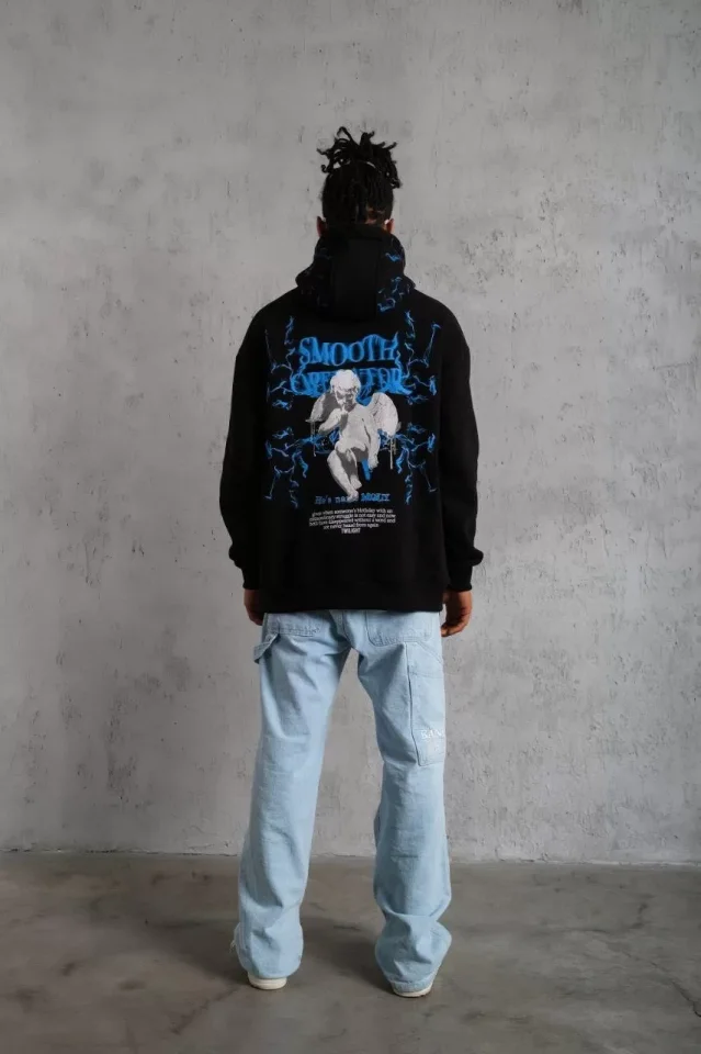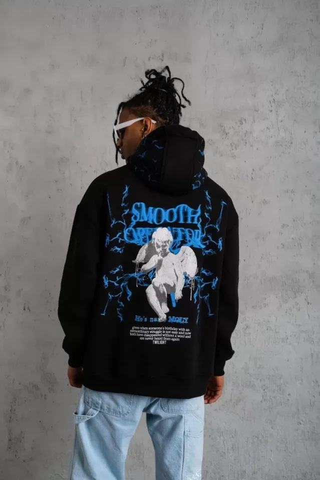 Erkek Yıldırım Baskılı Kapşonlu Sweat – Siyah