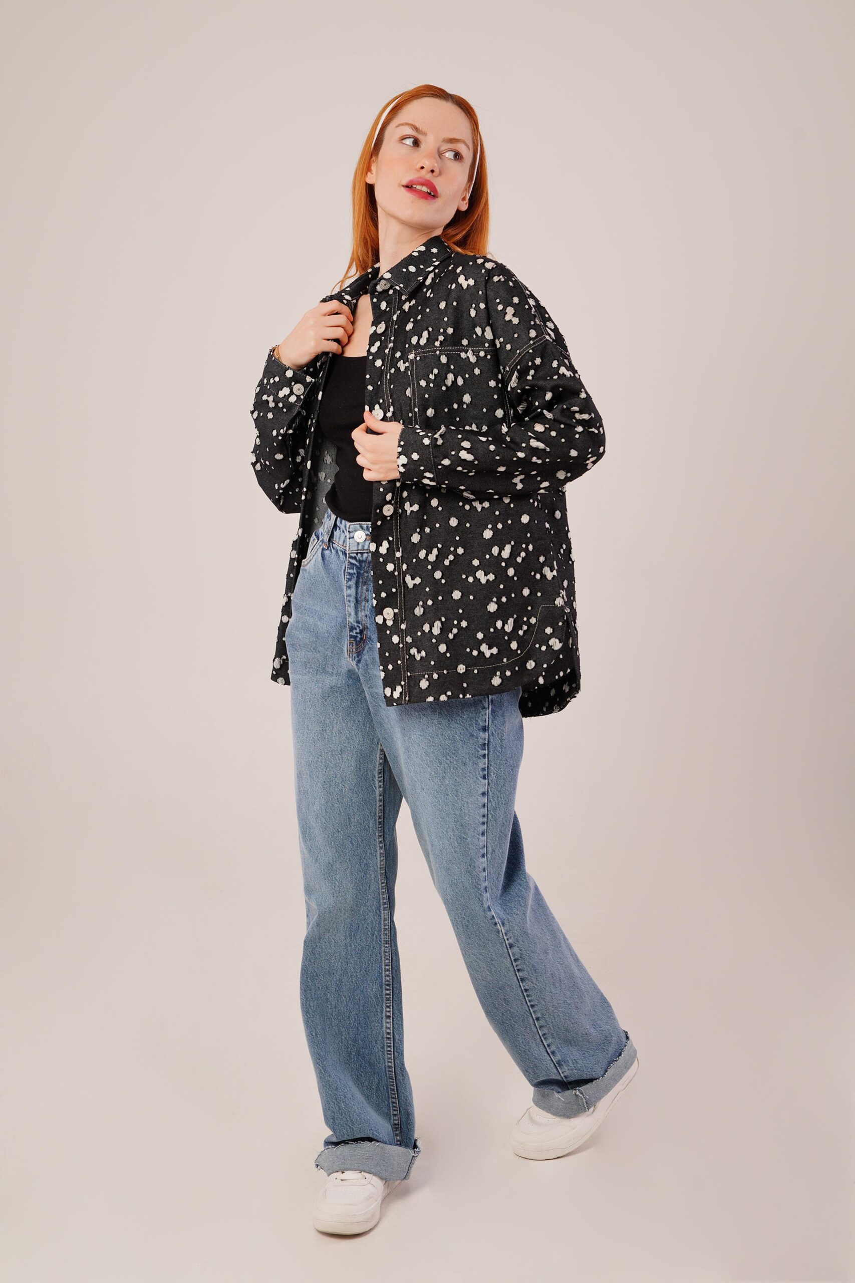 Eskitme Görünümlü Denim Siyah Gömlek