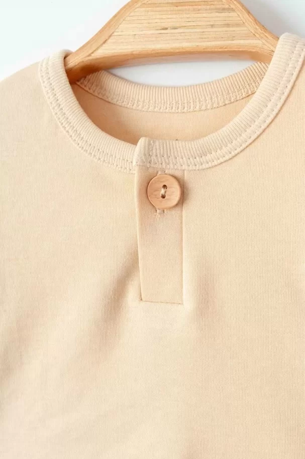 Düğmeli Lüx % 100 Pamuk Şapkalı 3’lü Erkek Bebek Takım
