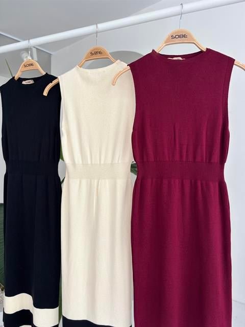Etek Ucu Şerit Detaylı Triko Elbise 2831