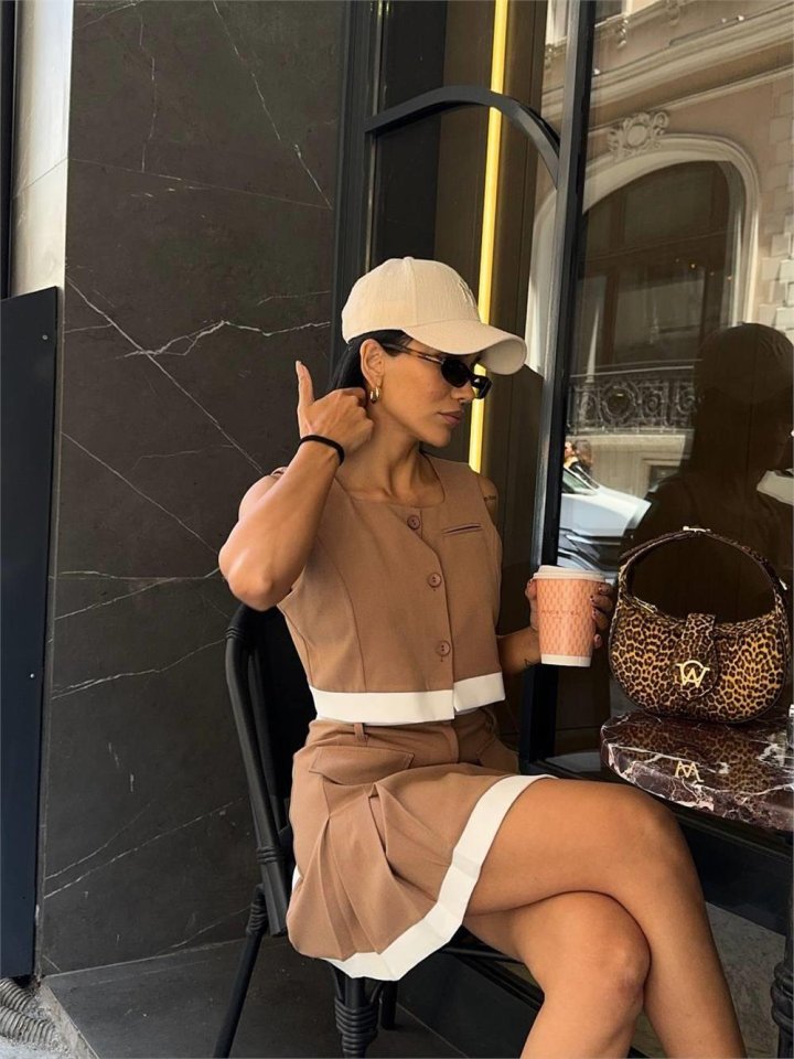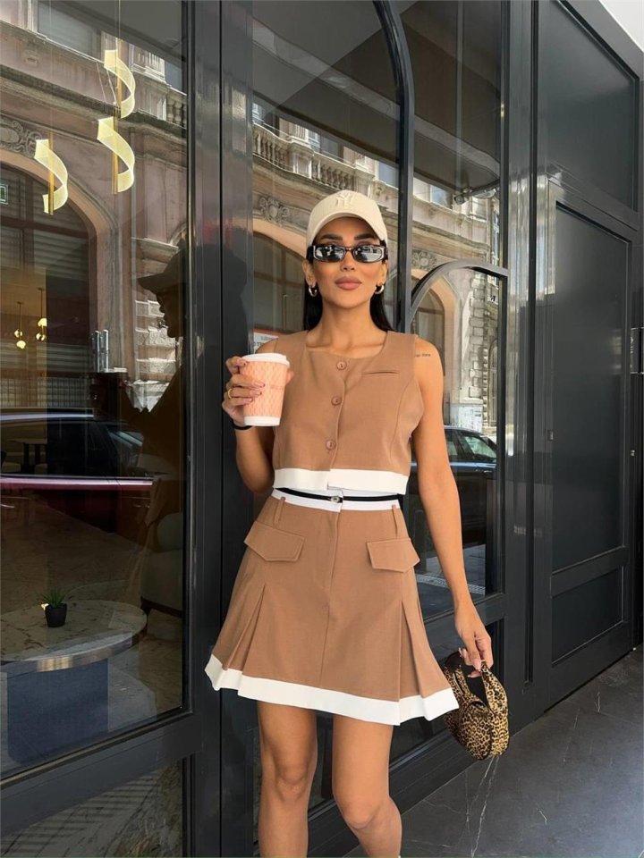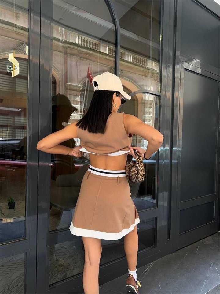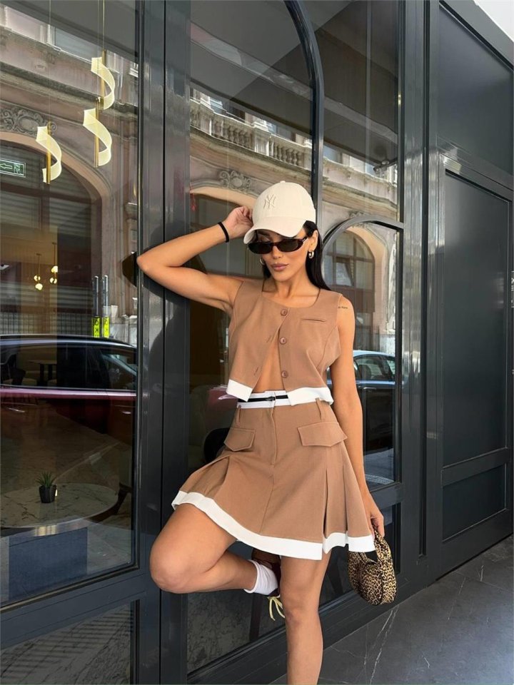 ETEKUCU ŞERİTLİ YELEK – TENİS ETEK TAKIM – Bej