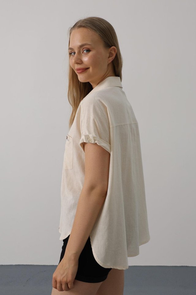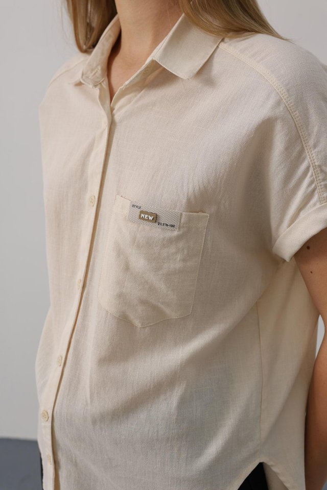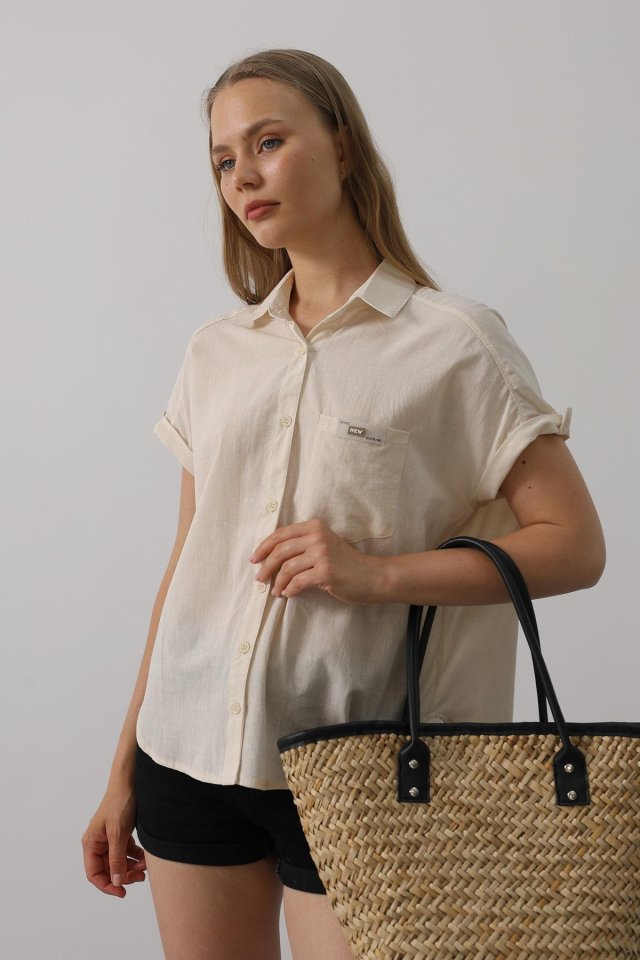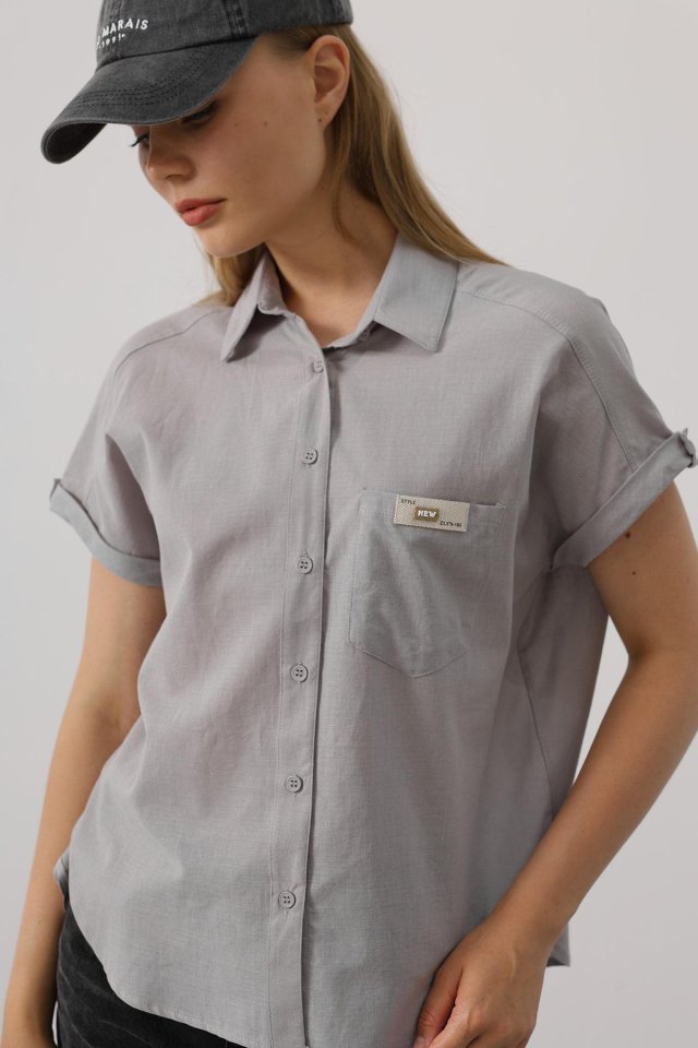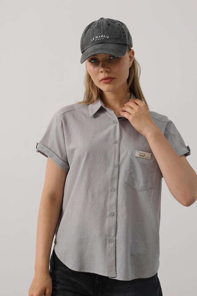 Etiket Detaylı Yarım Kol Gömlek – Taş