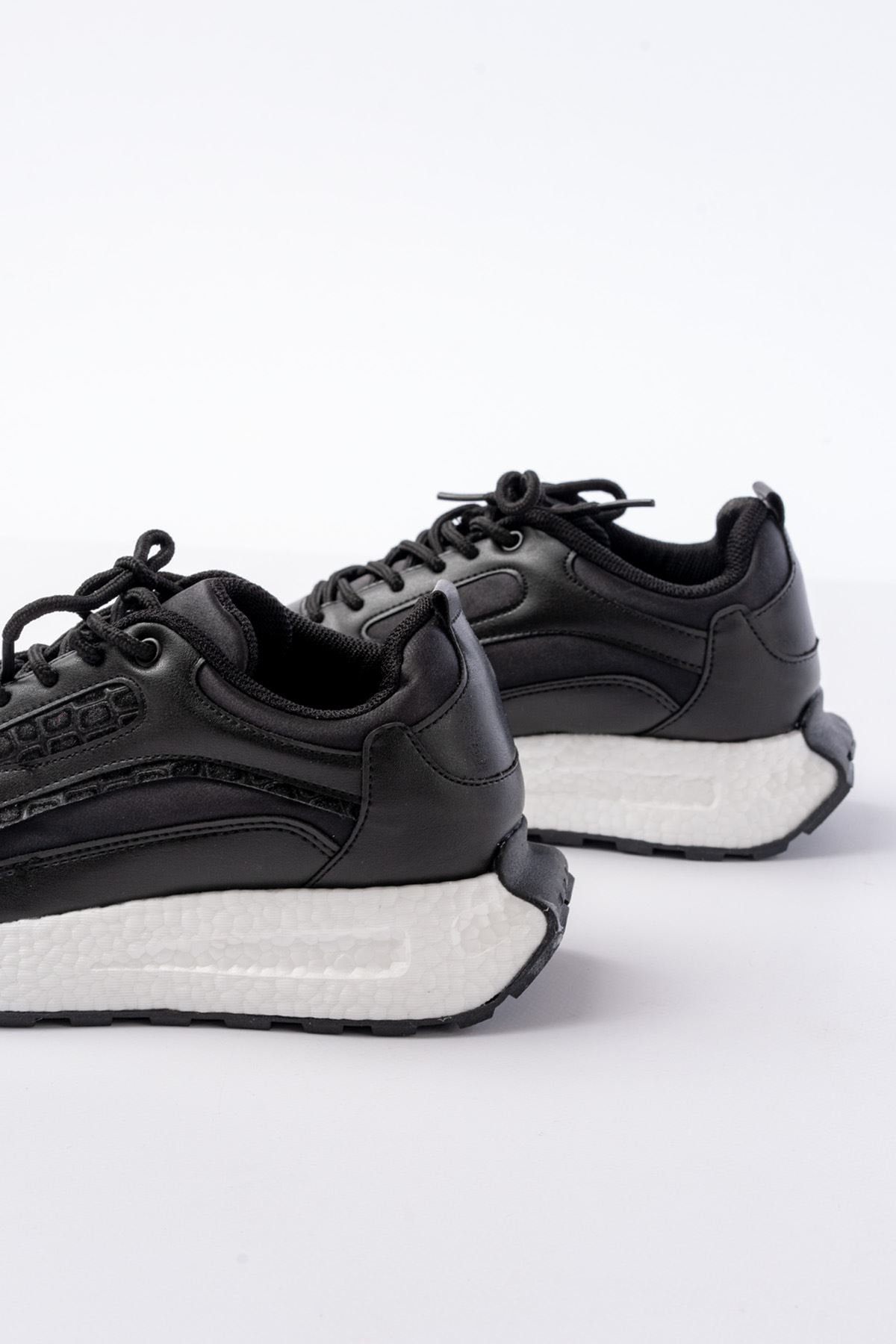 F-307 Siyah Bağcıklı Saten Taş Aksesuarlı Günlük Spor Ayakkabı