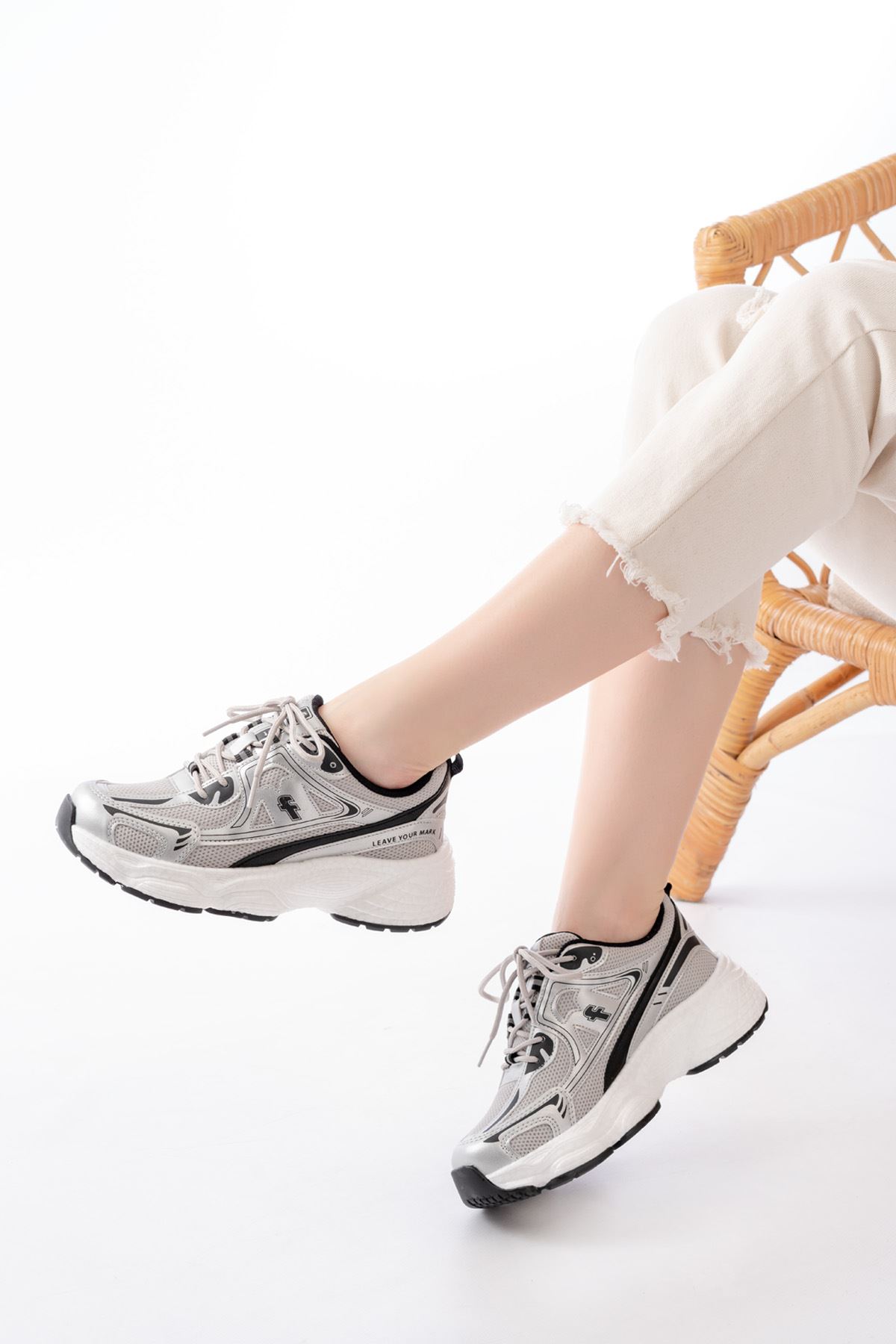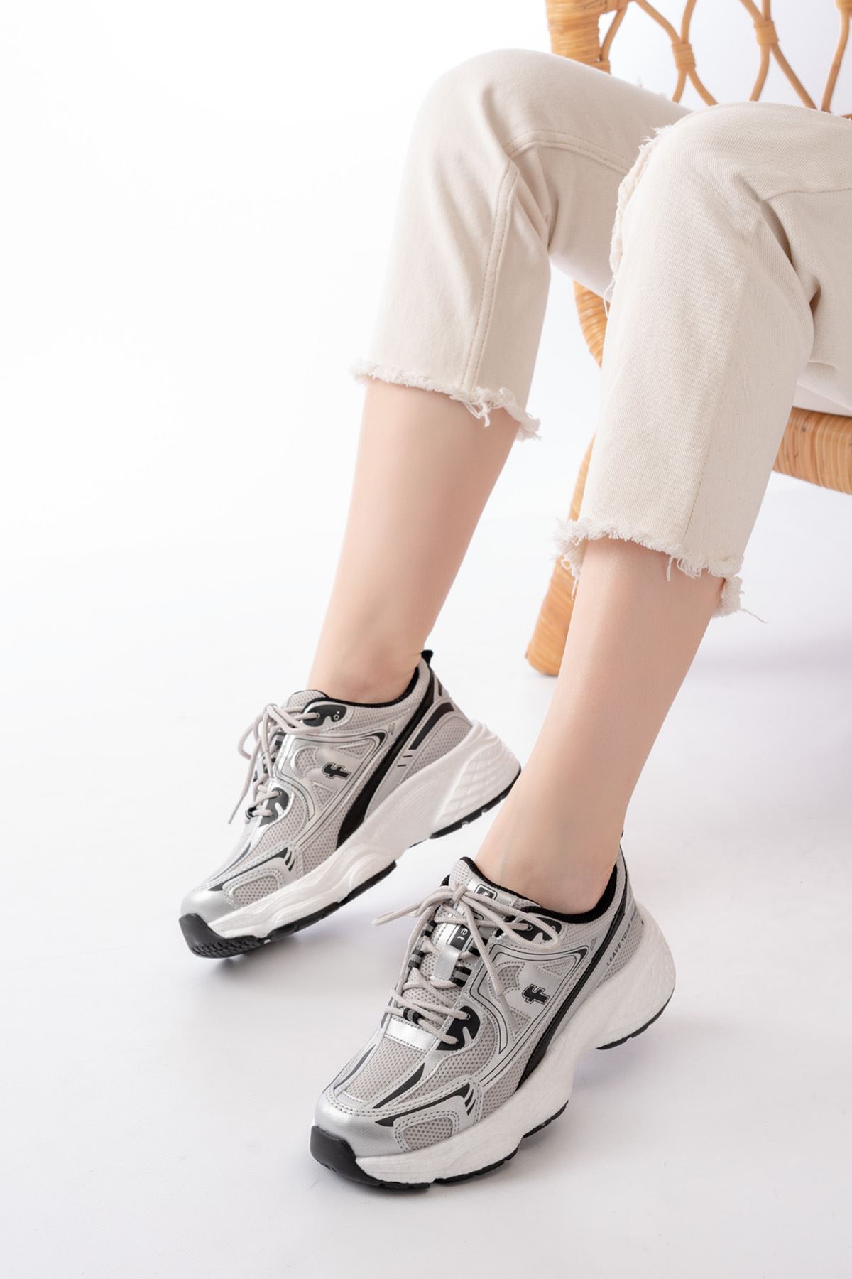 F-329 Gri Günlük Bağcıklı Beyaz Tabanlı Yazlık Spor Ayakkabı