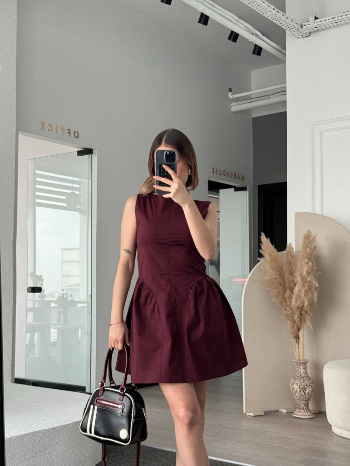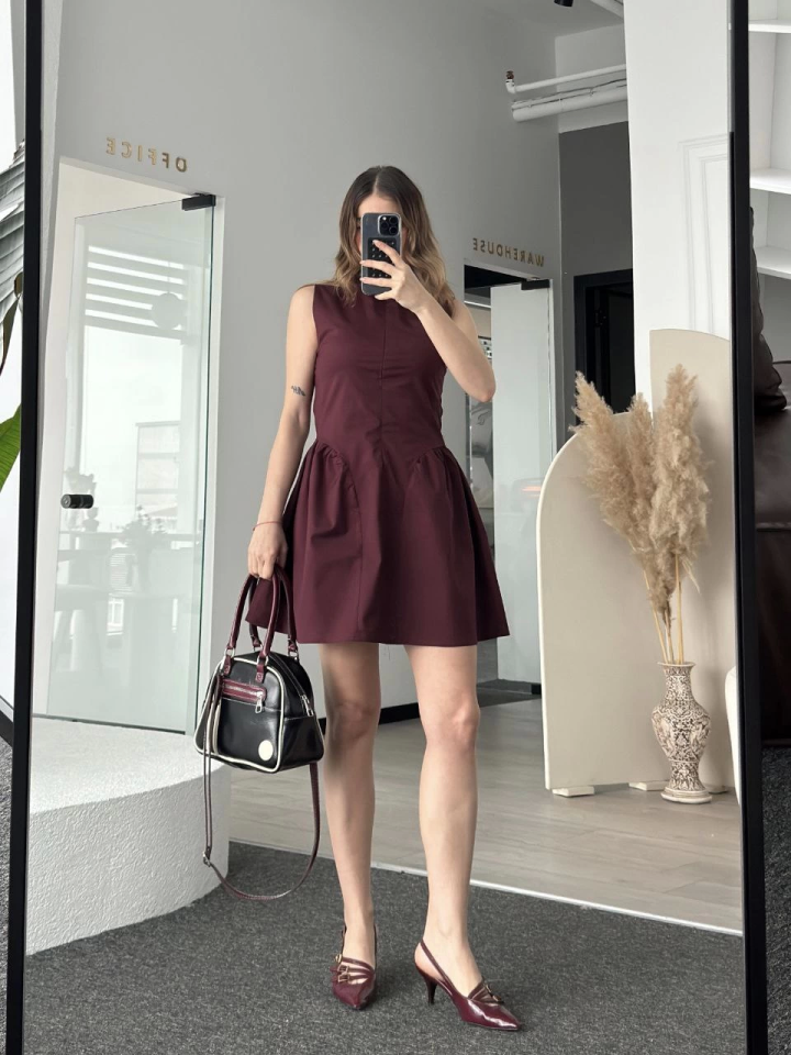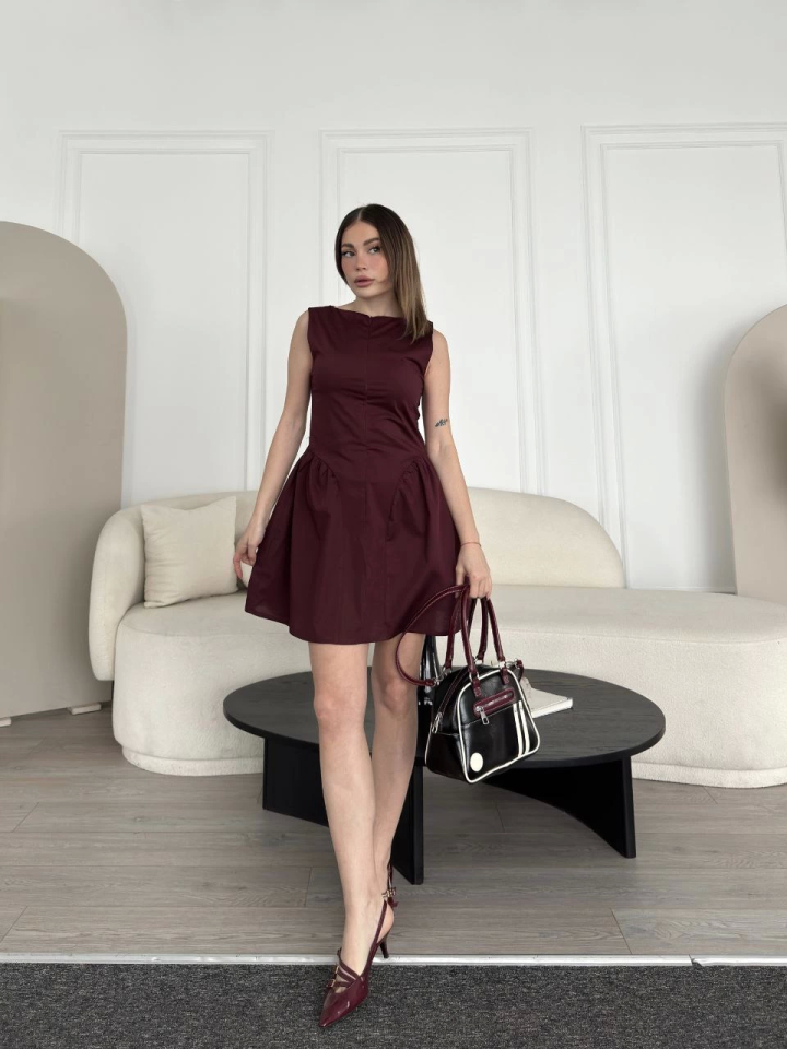 Fermuar Detaylı Mini Elbise – Kahve